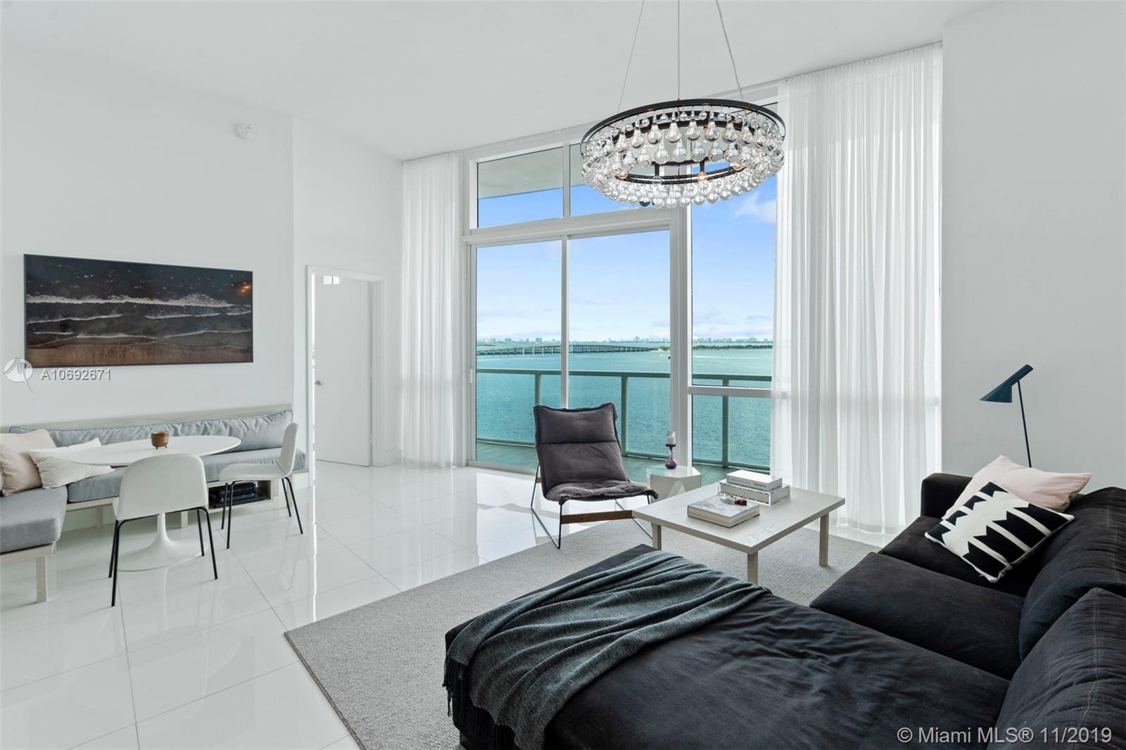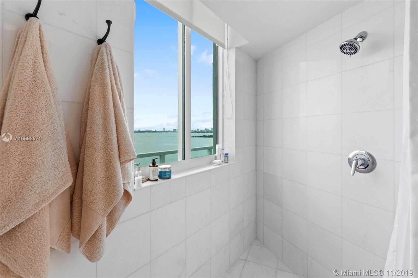 Water views everywhere in this incredibly unique property @ Onyx on the Bay! Only 2br floor plan of its kind with 12' high ceilings, floor to ceiling windows, and bay views and balconies from every room. Spacious open floor plan with lots of upgrades, white ceramic tile floors, upgraded open kitchen with high-end appliances, 2.5 baths, extra long balcony extending the entire unit and much more. Onyx is ideally located in Edgewater on the bay close to everything. Minutes to Midtown, Wynwood, the Design District, Miami Beach, Downtown and the MIA airport. The building offers full amenities with 24hr security and front desk staff, complete gym and cardio areas with sauna, pool area overlooking the bay and a sunrise/sunset deck with BBQ area.