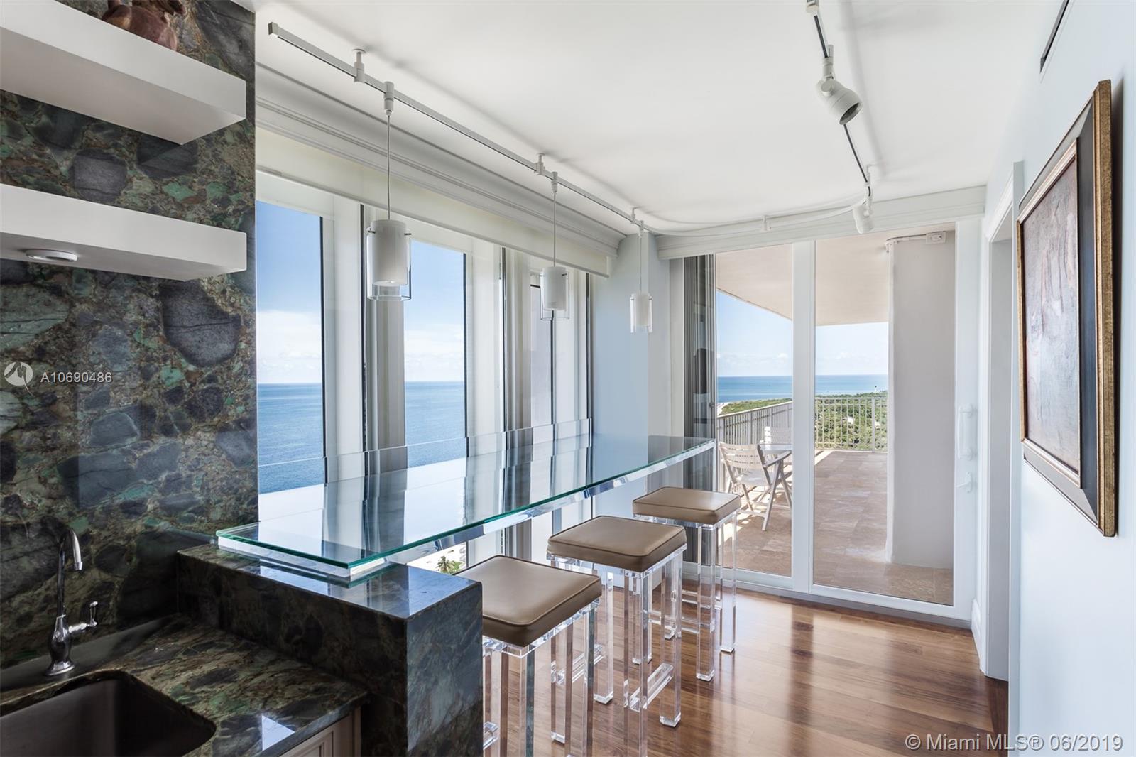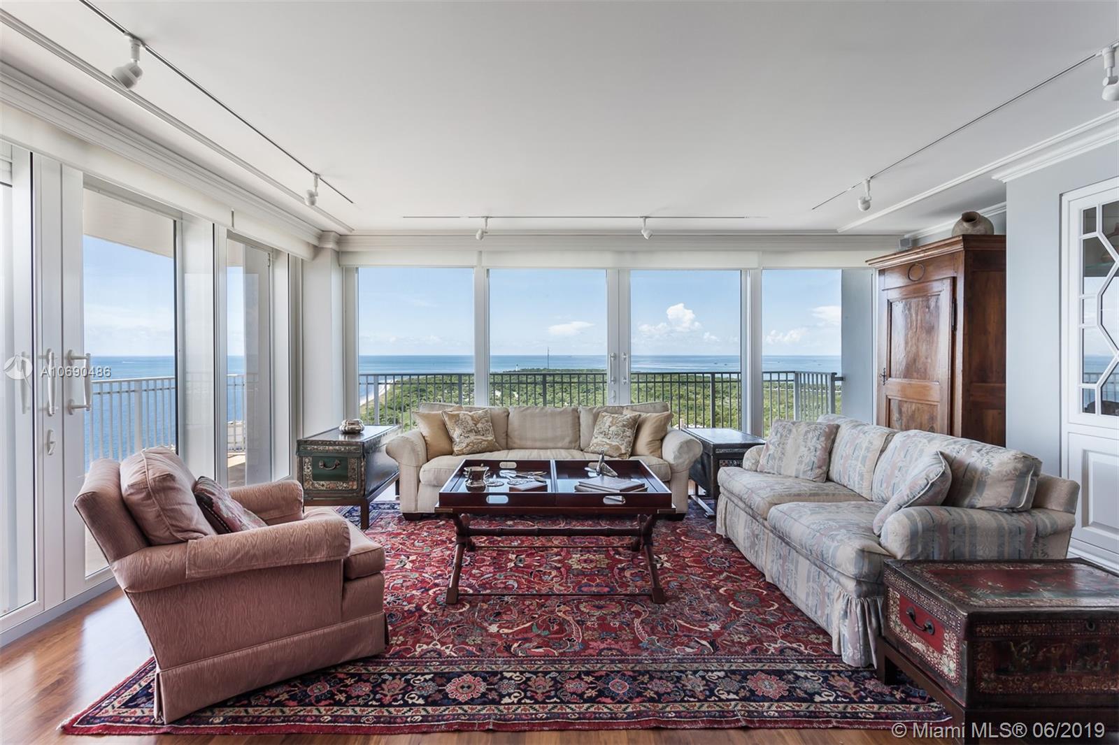 Magnificent beachfront spacious (3120 sq.ft.) corner residence on penthouse level boasts awe-inspiring expansive views of the Ocean: Bill Baggs Park and its lighthouse to the South and South Beach to the North. Towards the West side, Bay views and the Pines Canal offer extraordinary ever-changing sunsets. Beach and ocean views can be enjoyed from the wrap around balcony and from all the bedrooms and living areas. Unit has been totally & elegantly remodeled to a 2 bed/3 bath that can very easily be converted back to a 3 bedroom/3 bathroom flat. Top of the line finishes and appliances combined with tasteful choices of decorating elements enhance the sense of luxury. Well established Key Biscayne bldg with direct beach access, pool, tennis courts, exercise rm, children playground & party rm.