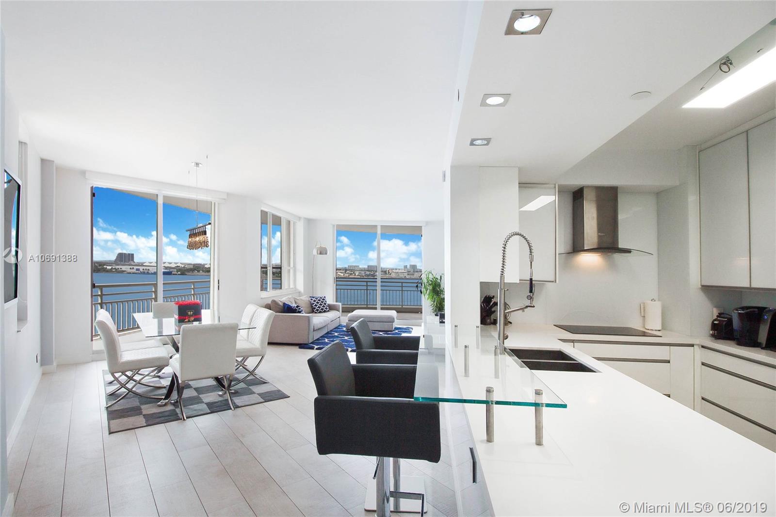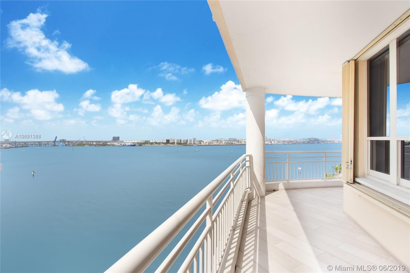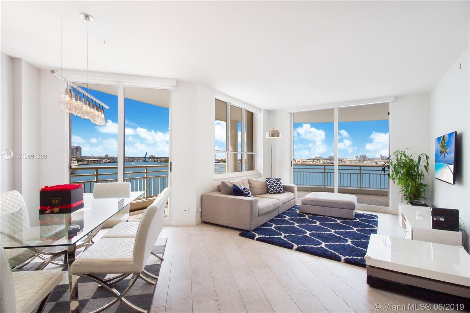 Completely remodeled unit with top of the line materials. The best line in the building, spectacular 180-degree water view from every room. This corner unit is facing directly to the the bay. You will enjoy the best view of the Biscayne Bay, the sunrise in the morning and the sunset with a beautiful city skyline at the end of the day. Split floor plan, open kitchen with the best appliances, two bedrooms and two and half bath. Rented for a year, great for the investor! Walking & jogging path around prestigious Brickell Key. 1 parking space.
