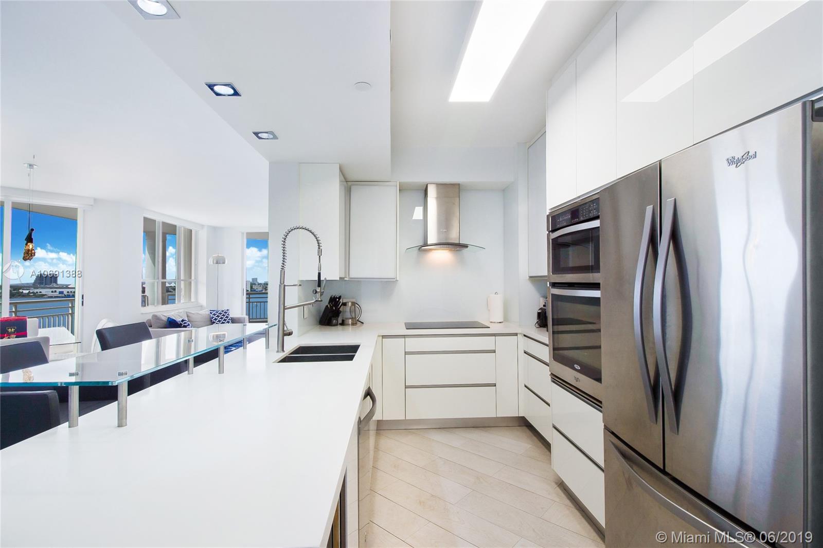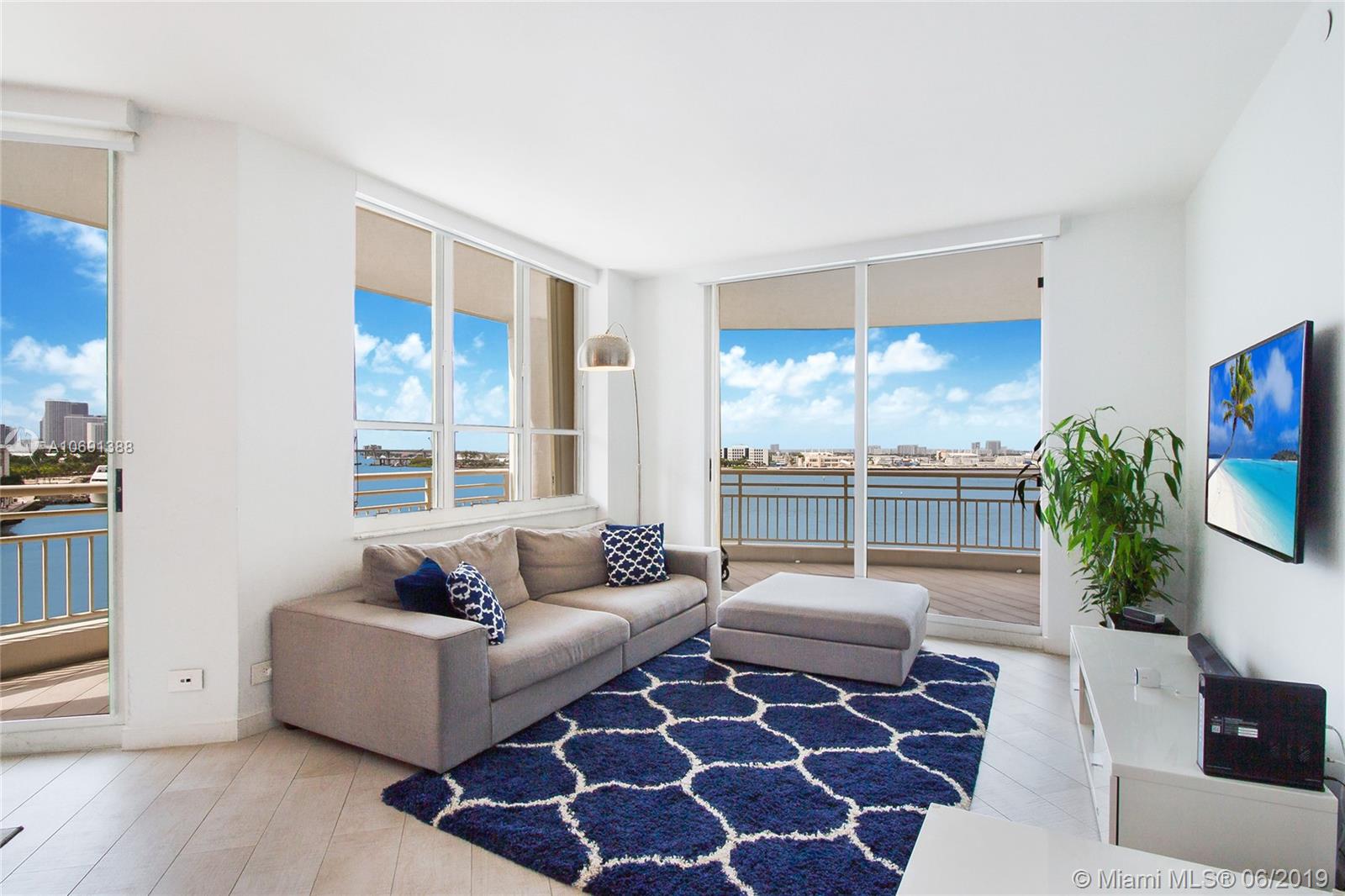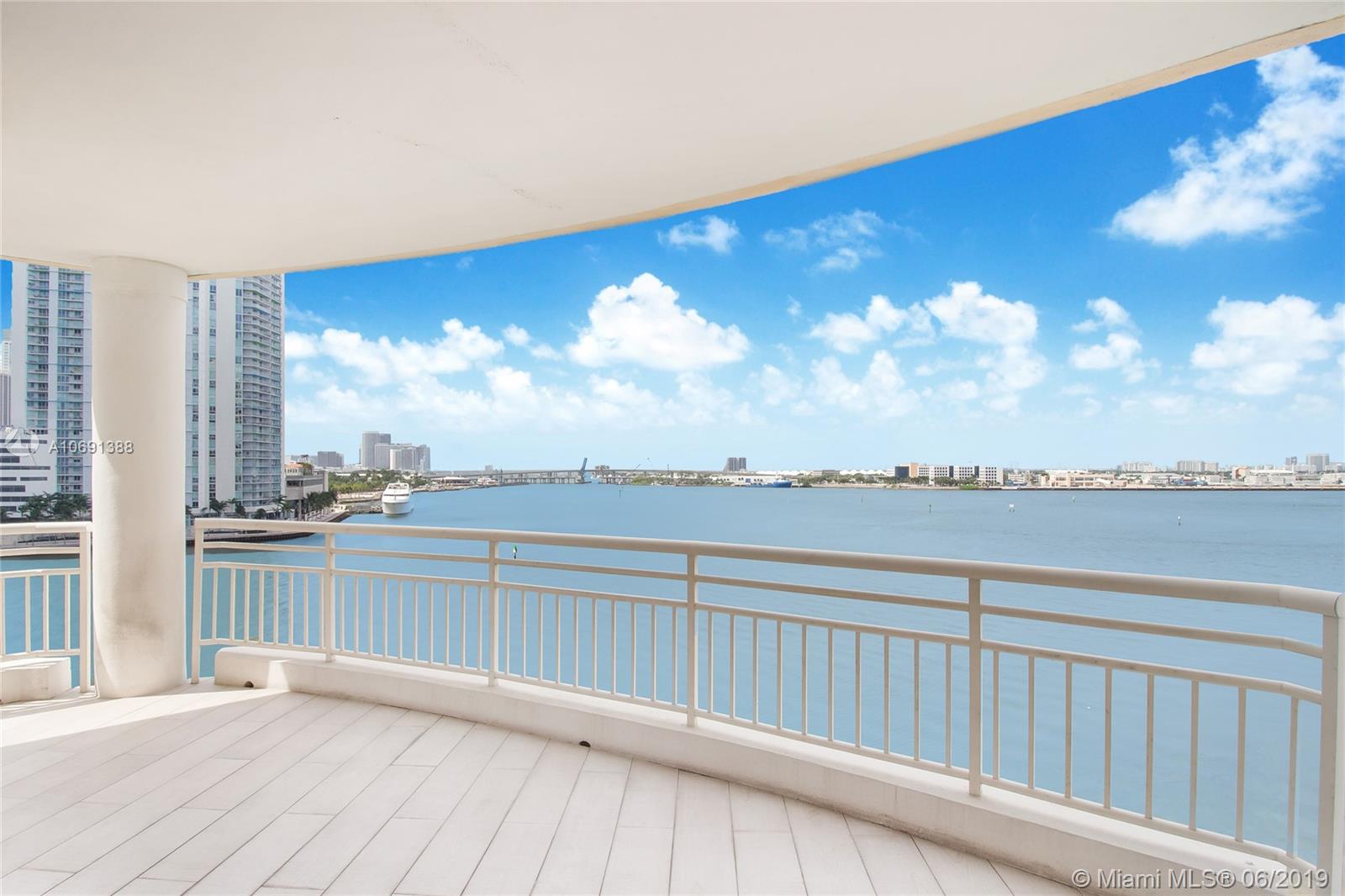 Completely remodeled unit with top of the line materials. The best line in the building, spectacular 180-degree water view from every room. This corner unit is facing directly to the the bay. You will enjoy the best view of the Biscayne Bay, the sunrise in the morning and the sunset with a beautiful city skyline at the end of the day. Split floor plan, open kitchen with the best appliances, two bedrooms and two and half bath. Rented for a year, great for the investor! Walking & jogging path around prestigious Brickell Key. 1 parking space.