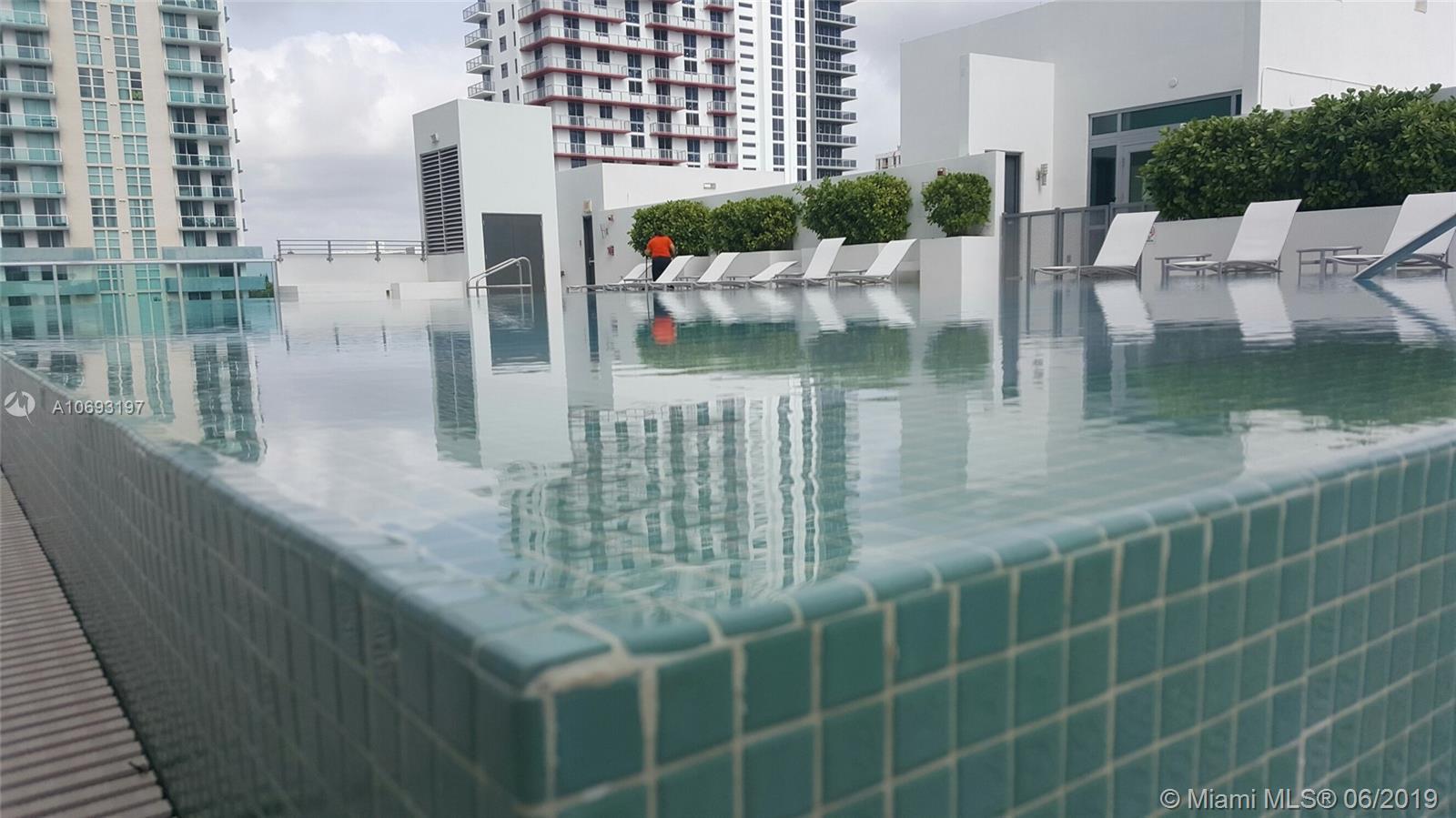 1/1 Penthouse with balcony facing North overlooking the city skyline, pool and partial bay view. High ceilings, stainless Steel appliances and modern kitchen cabinets with granite countertops. Bedroom with 2 closets and also a linen closet in corridor. Mondrian inspired building with a lovely ambience lobby, has a beautiful infinity pool with jacuzzi and ample sundeck, also offers sauna rooms, spacious party room and GYM. Centrally located on the Edgewater area and very close to Midtown, Art District, and Downtown. Investor's opportunity; rent right away, corporate buyer ok, unit rented until 9/30/2019