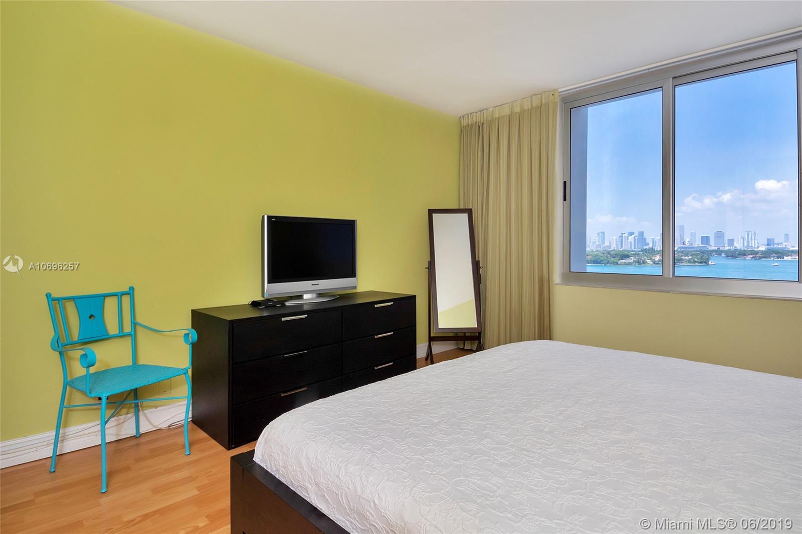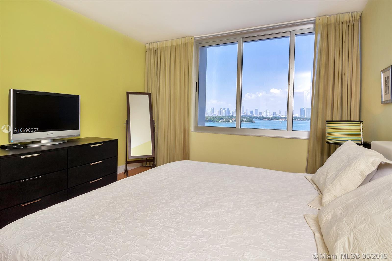 JUST REDUCED....LOWEST PRICED,..This is a Direct Unobstructed Bay View!! Upon opening your door you are welcomed home by the pristine waters of Biscayne Bay, the stunning Miami skyline as a backdrop with views of Yachts, Boats and Jet Skis as they sail thru the open bay! This will be every day in this amazing unit in the heart of South Beach. This 1 bed 1 bath condo is the epitome of easy Florida living. Enjoy exploring a neighborhood full of restaurants, cafes, shopping and retail all at your doorstep. The Mirador is a full service building including: valet, security, in house management, state of the art fitness center, gorgeous bay side pool, convenience store and more. The condo has wood floors throughout and hurricane impact windows. Easy to show.