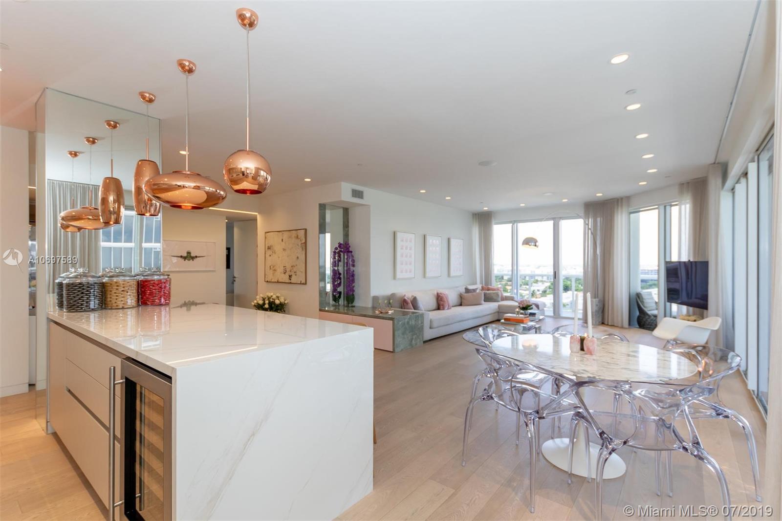 Designer curated with meticulous attention to detail. This fully renovated Smart home corner unit with views of the Ocean, Downtown Miami, and the Intracoastal, features 3 full baths (standard 01 line is 2.5 baths), oak floors, custom flush Dayoris entry and interior doors, custom mirror cladded elevator door and frame, custom marble-built ins and Poliform wardrobe, custom stone vanities and bathrooms, Italian kitchen with Sub Zero, Wolf and Miele appliances, window treatments including electronic black out roller shades and privacy screen, Tom Dixon lighting, centrally controlled interior cameras and audio/visual throughout unit. Furniture available for sale. Only fully renovated corner unit available.