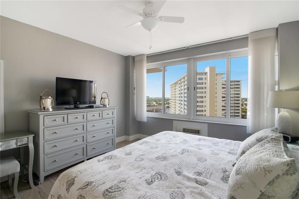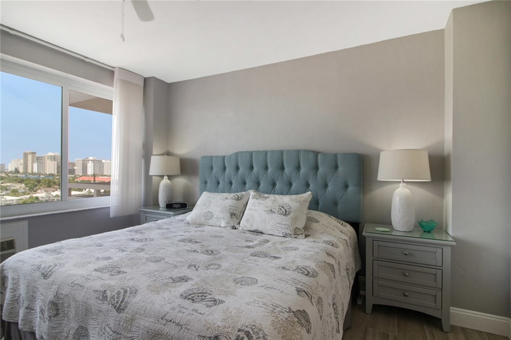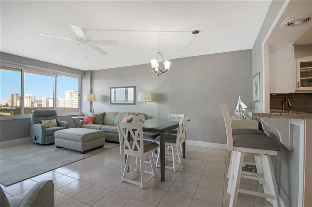 Lovely one bedroom apartment on the Galt Ocean Mile with incredible Intracoastal views! Kitchen is open and updated featuring white cabinets, granite countertops, stainless steel appliances and chic glass tile backsplash. Renovated bathroom with new vanity, stylish tile flooring and modern glass tub enclosure. Large private balcony. Hurricane impact windows and door installed! Located across the street from the beach and walking distance to restaurants, post office, bank, grocery and the water taxi. Watch the daily boat parade and sunsets by the large 30 x 60 heated and cooled pool directly on the Intracoastal. Low monthly maintenance includes Cable TV, 24 hour security and on site management. Association states 55 plus, no pets, no rentals. You will love living here.