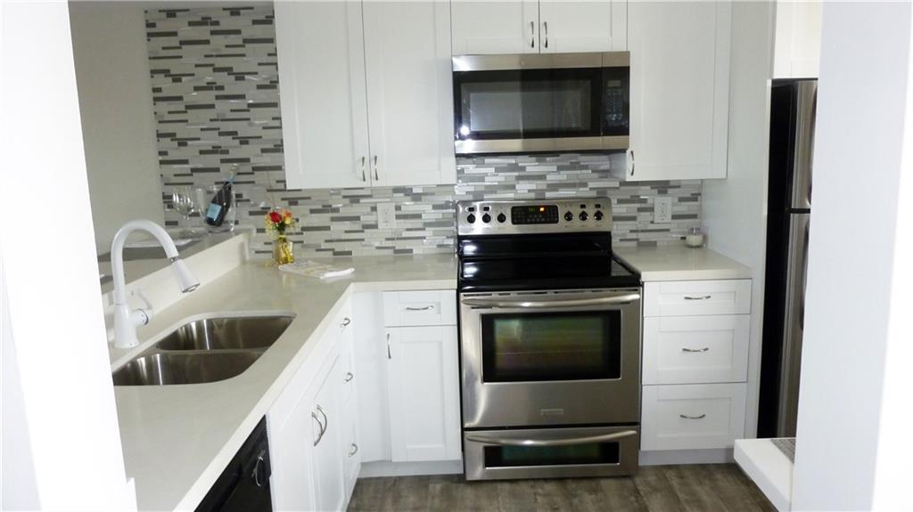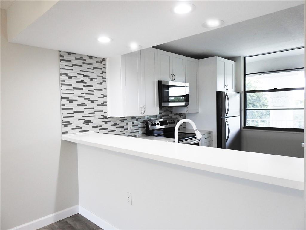 Gorgeous 4th-floor condo with great views of the golf course. This completely remodeled 2/2 unit features: washer/dryer, kitchen with white Italian Quartz counters, Stainless Steel appliances, wood-like laminate floors that are insulated for soundproofing & cold/warm air retention, open-concept floor plan and small office/den. All ages community with Clubhouse, pool/hot tub, golf, tennis & tot lot. Basic cable, water/trash, common areas, building exterior included in Assn fee. Close to the highways, shopping, dining and FLL airport. One assigned parking. No renting 1st 2 years/No pets.