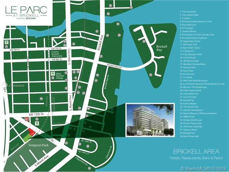 Lovely city views greet you when entering this 2/2 Brickell residence. Unit features include ceramic flooring throughout social area and balcony, open European style kitchen, new bedrooms carpeting and master suite with enormous walk-in closet. Only unit being sold with 2 side-by-side parking spaces and huge storage room under AC both conveniently located on the same level. Ready to move in with fresh paint and professionally serviced A/C. Building amenities include 24-hour front desk attendant, gym, pool, roof-top sky lounge w/ spa tub, electric car charging station, and on-site property management. Ideally located within steps to grocery stores, shopping areas and cafes. Simply a super offering!