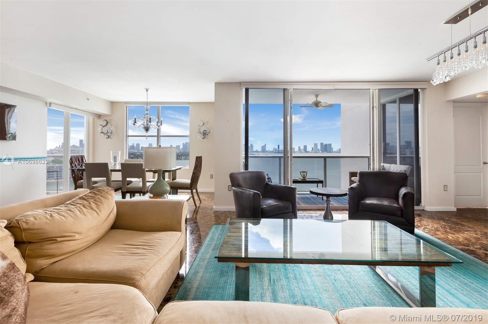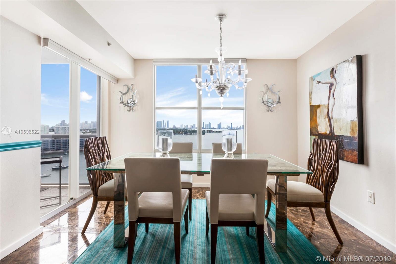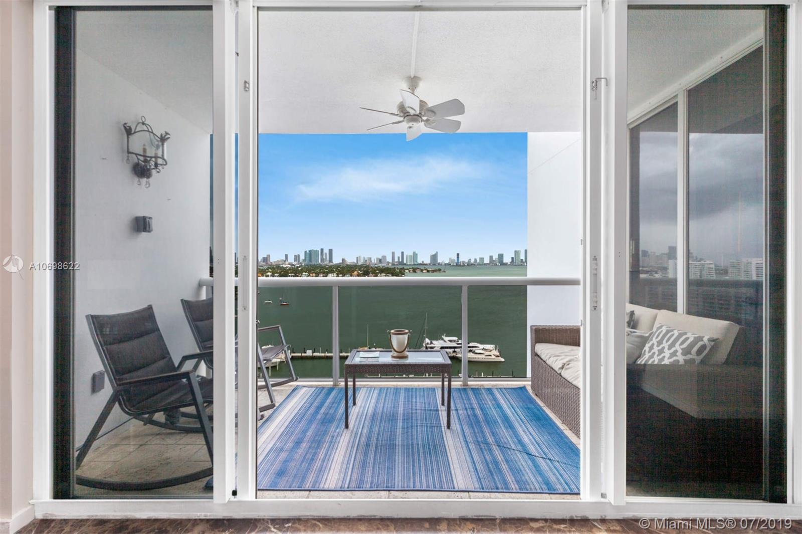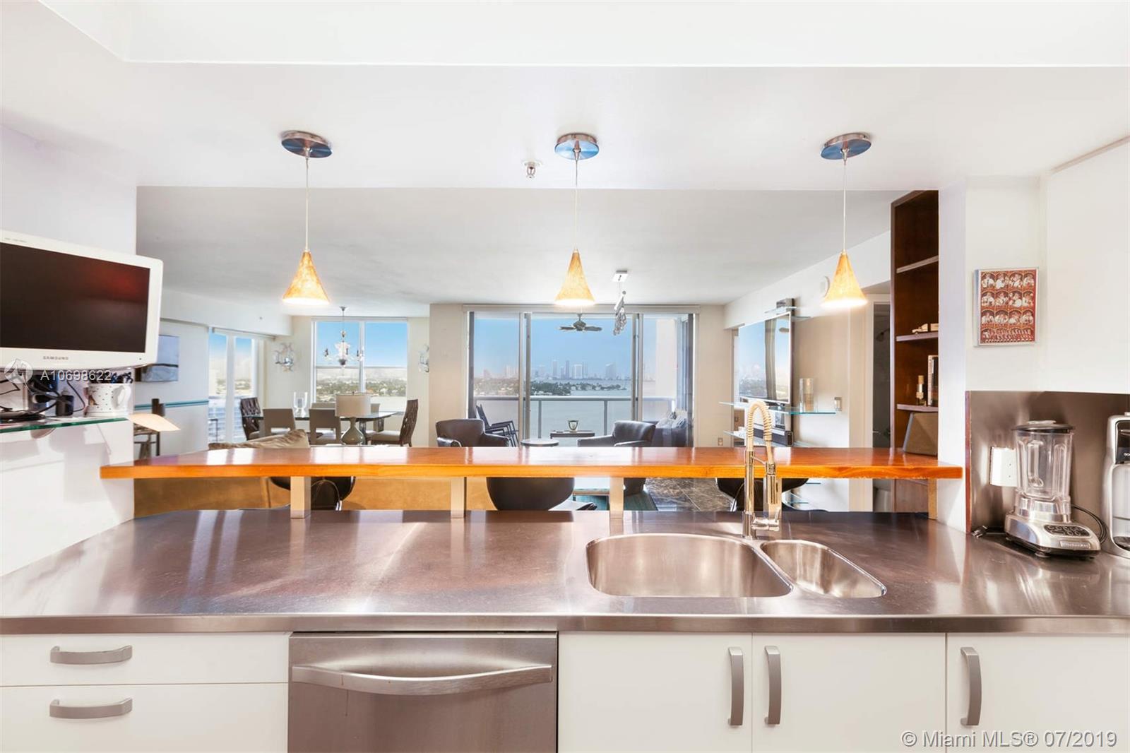 Direct bay corner 3/3 in the heart of Sunset Harbour. Live on the shores of Biscayne Bay above a private marina, steps to the best restaurants, boutiques and fitness activities. Walk to Lincoln Road, The Standard or run on the Venetian Causeway. Flowing 1900sf split plan with three private terraces and bay views from every angle. Space for the entire family, plus in the North Beach Elementary School District. Marble + wood floors, open white chef's kitchen with SubZero, updated master spa bath, two new ACs, 3 self-park garage spaces (low floor), doorman, valet, pool, gym, electric car chargers. Sunset Harbour South is a stable and established association, and is pet friendly. Your backyard is a bay walk through multimillion dollar marina. This layout is rarely on the market.