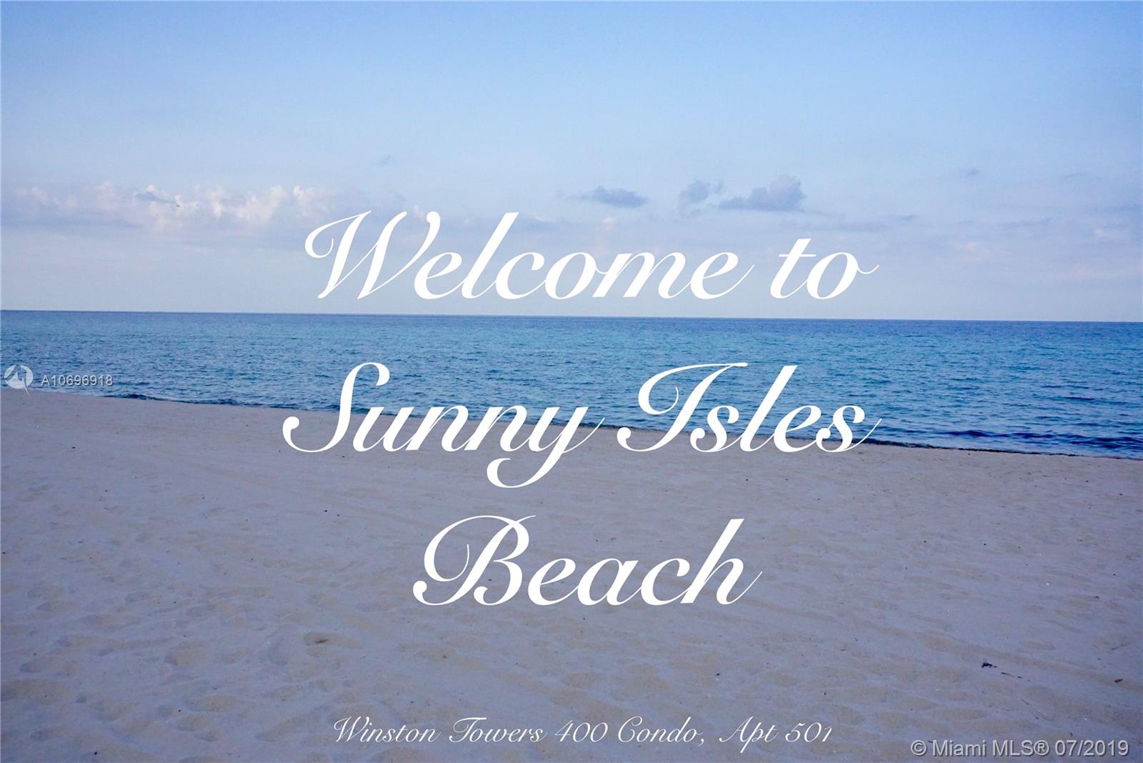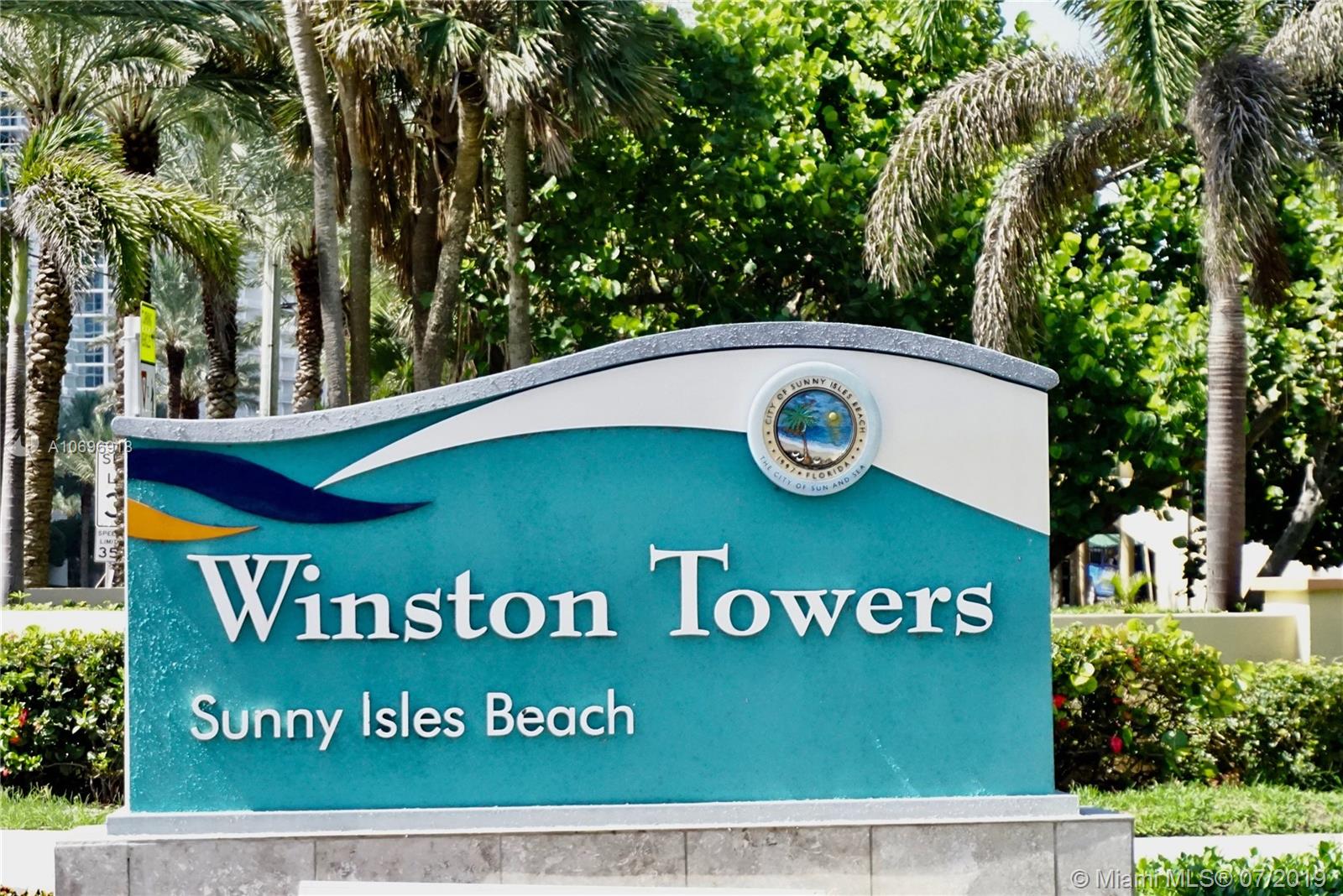 EXCELLENT VALUE - Ideal location, only a few minutes walk from stunning Sunny Isles' beach, shops and restaurants. Move-in ready spacious unit with 2 bed 2 bath split format. Eat in Kitchen, formal dining area, Good sized master bedroom with ensuite bathroom, large closets and extensive storage. Enjoy the view from the balcony. The amenities at Winston Towers include; 24 hour security, heated community pool, gym, sauna, library, game room and billiard room. Included in the maintenance fee: basic internet/cable, appliance maintenance insurance, water, trash removal, recreational facilities and security. Viewing by scheduled appointment - call today!
