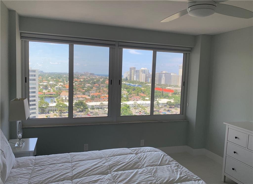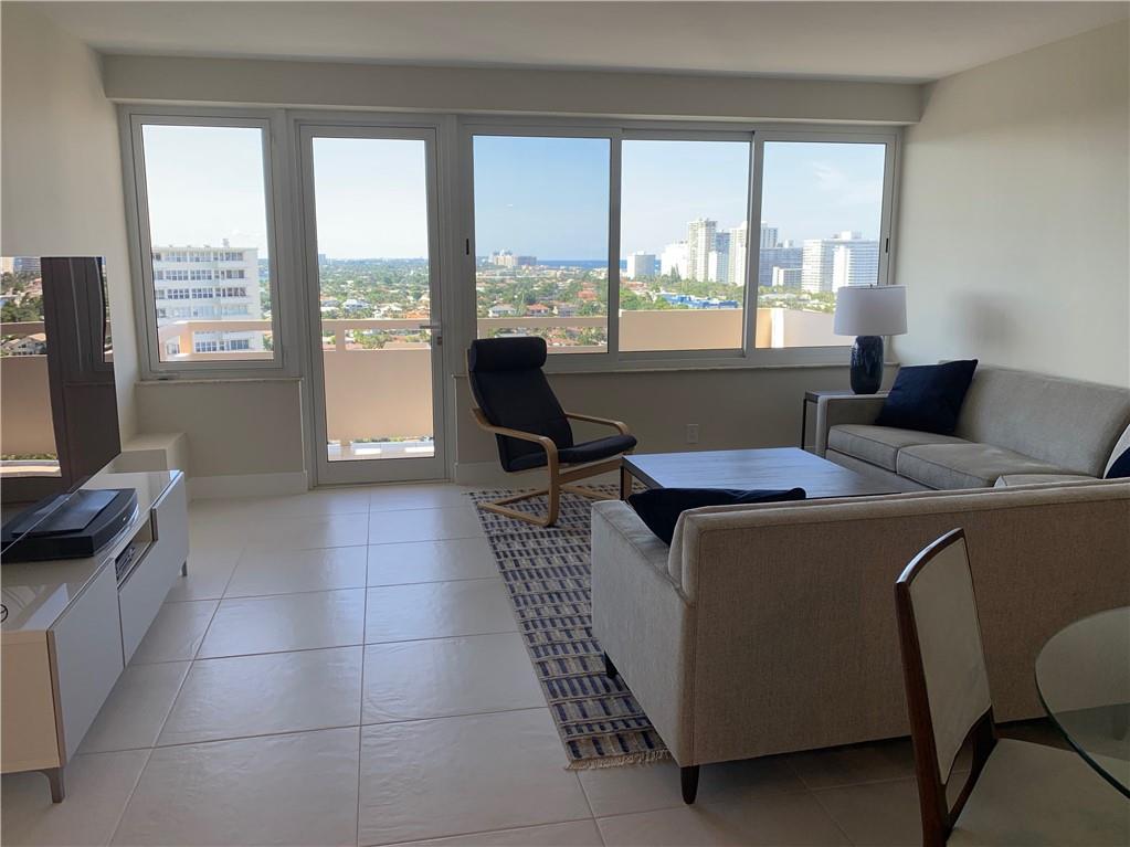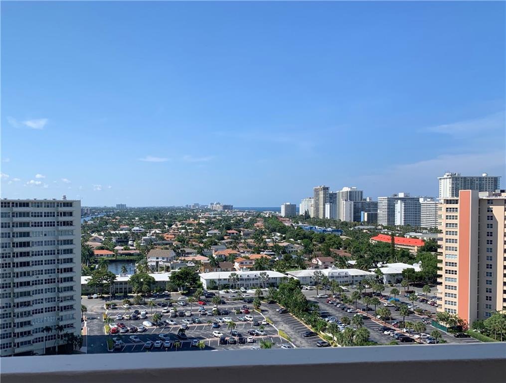 Stunning panoramic view of the ocean, the Intracoastal, and Fort Lauderdale looking North, from this totally remodeled 2 bed/2 bath penthouse unit. Brand new A/C system, kitchen with induction range, washer/dryer, porcelain floors, and master bathroom with walk-in shower. Abundance of closets and storage. Secure building with 24-hour doorman, updated gym, and a beautiful outdoor pool right on the Intracoastal. A 55+ community just 2 blocks from the ocean and an easy walk to restaurants and shopping.