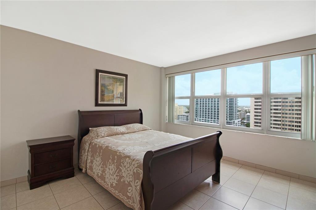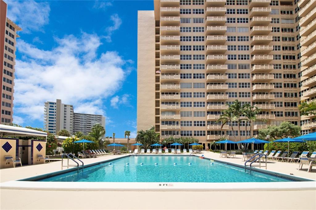 One bedroom one bathroom apartment with lovely views of the pool, downtown Fort Lauderdale and the Intracoastal Waterway. Tile floors throughout the living spaces and hurricane impact windows / door installed. Large kitchen with ample counterspace and storage. Two walk in closets. Updated bathroom with walk in shower. Private balcony and fantastic amenities including a tropical garden area with a 30 x 60 heated pool. Association states one Buyer must be 55 plus. No pets or rentals. Coral Ridge Towers South is a fantastic community located on a barrier island between the Ocean and Intracoastal Waterway. You will love living here!