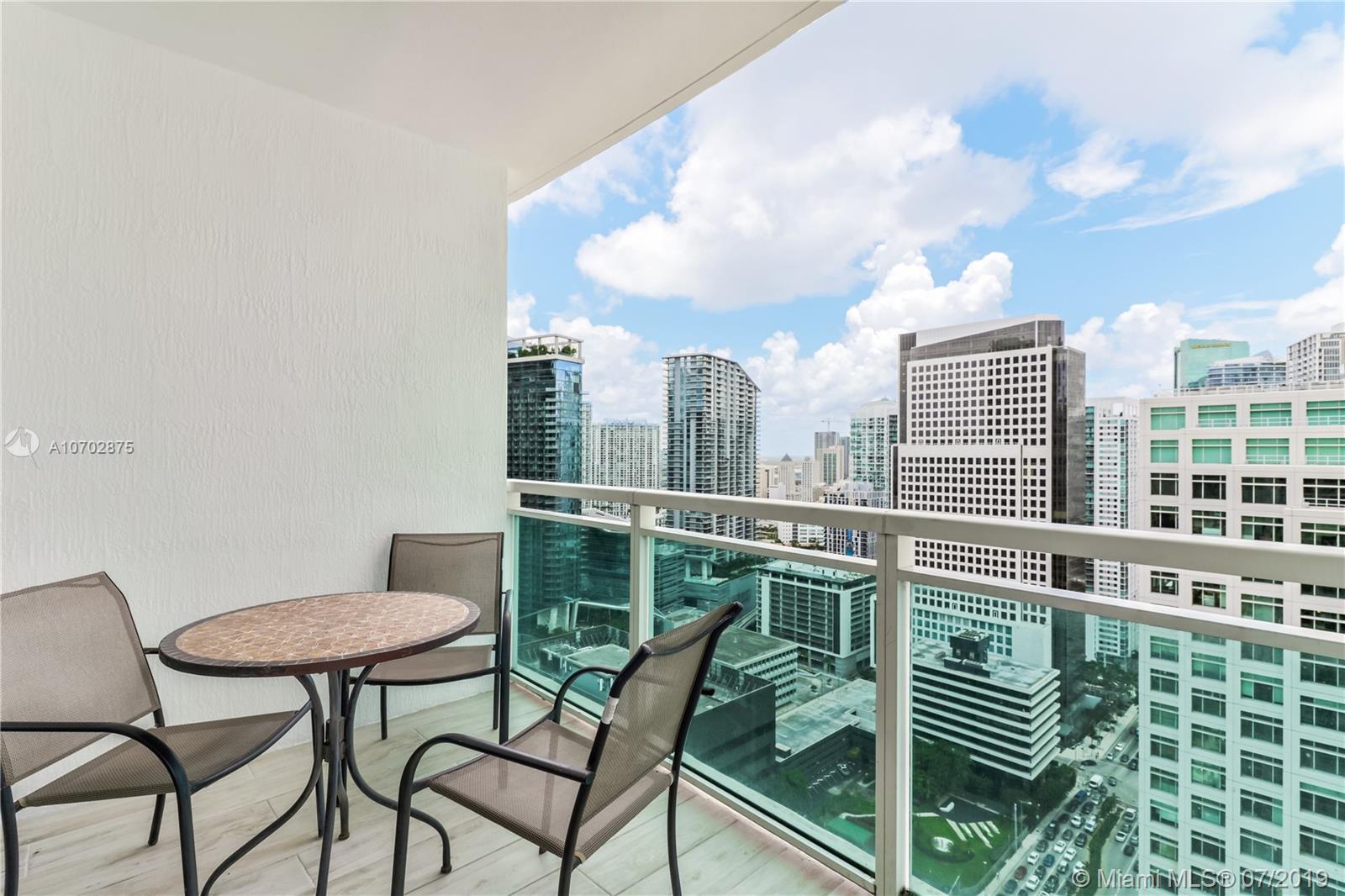 Beautiful 1/1 condo on the 35th floor in a prime location directly on Brickell Ave. Beautiful water and city views from the large blacony and extended bay views from the bedroom floor-to-ceiling windows. Brand new porcelain tile floor throughout and recently painted interior and exterior walls and doors. Unique opportunity to acquire the largest 1 bedroom floorplan in the building with a rare high view. The building is centrally located steps from Brickell City Centre and Mary Brickell Village. Amenities include 2 pools, jacuzzi, gym, business center, and club room. The brand new pool deck renovation added new: hammocks, daybeds, landscaping and BBQ grill. A private thruway provides unique access to both Brickell Bay Dr aned Brickell Ave, highly useful to avoid Brickell Ave rush hour.