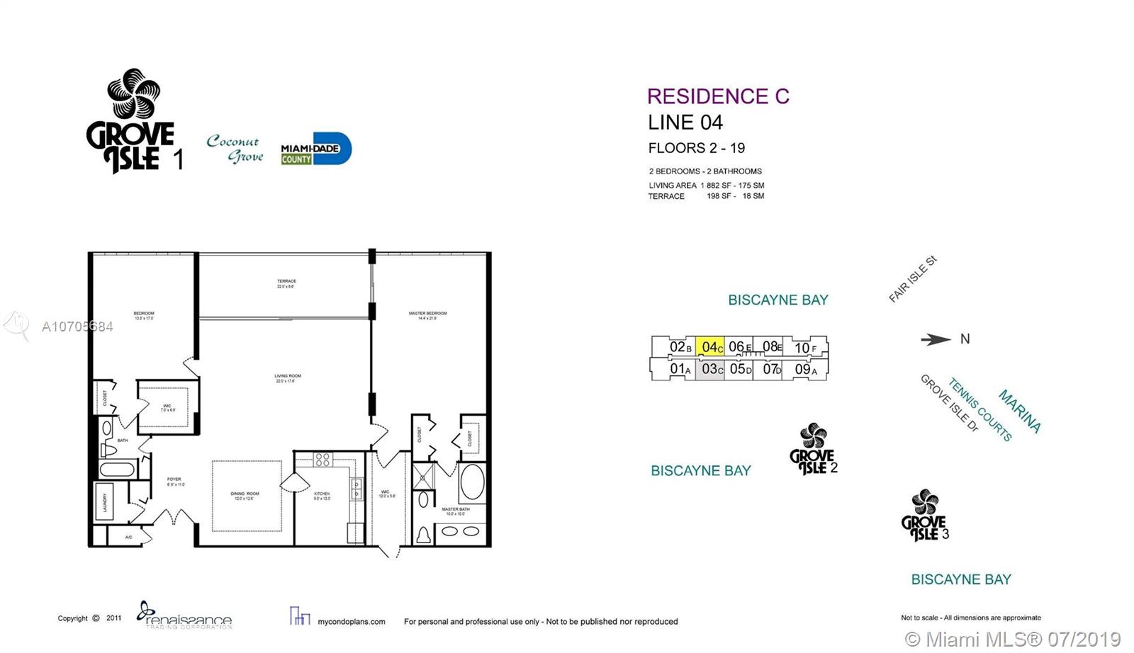 ONLY '04 unit available on Grove Isle. Building 1, high floor, spectacular, unobstructed panoramic views of Biscayne Bay, Coconut Grove skyline, marina and sunsets. Highly desirable split-plan unit, 1882 sq. ft. Two bed, 2 full bath, large living-dining. Grove Isle is a guard-gated, 20 acre private island in the heart of Miami's Coconut Grove, with balmy breezes, breathtaking sunsets, marina, beach and jogging path. Minutes to Brickell, Downtown, restaurants, bayfront parks and Miami's best schools.