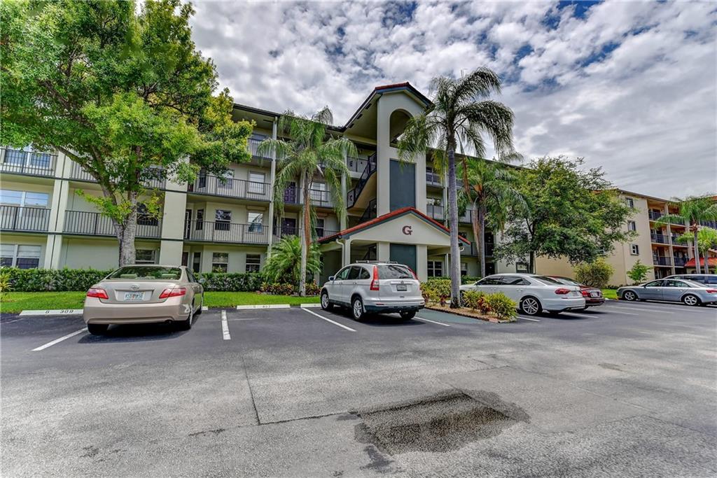 Great opportunity to own a corner unit, 2 beds 2 bath, great floor plan, excellent location, galley kitchen, breakfast nook, tile and carpet, washer and dryer in the unit, split bedrooms with an oversize master bed and walking closet. large patio with roll ups. Walking distance to the pool and the back gate Pembroke Road. Shuttle bus to the Clubhouse and nearby shopping centers and restaurants. A resort style community. tennis, golf, pools, theater, sauna, billiards, shows, movies, dancing, Plenty of guest parking. Can not be leased until 2 years of continued ownership. PRICED TO SELL!