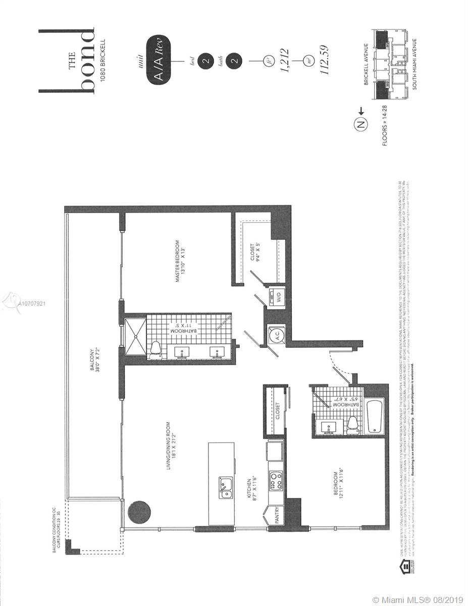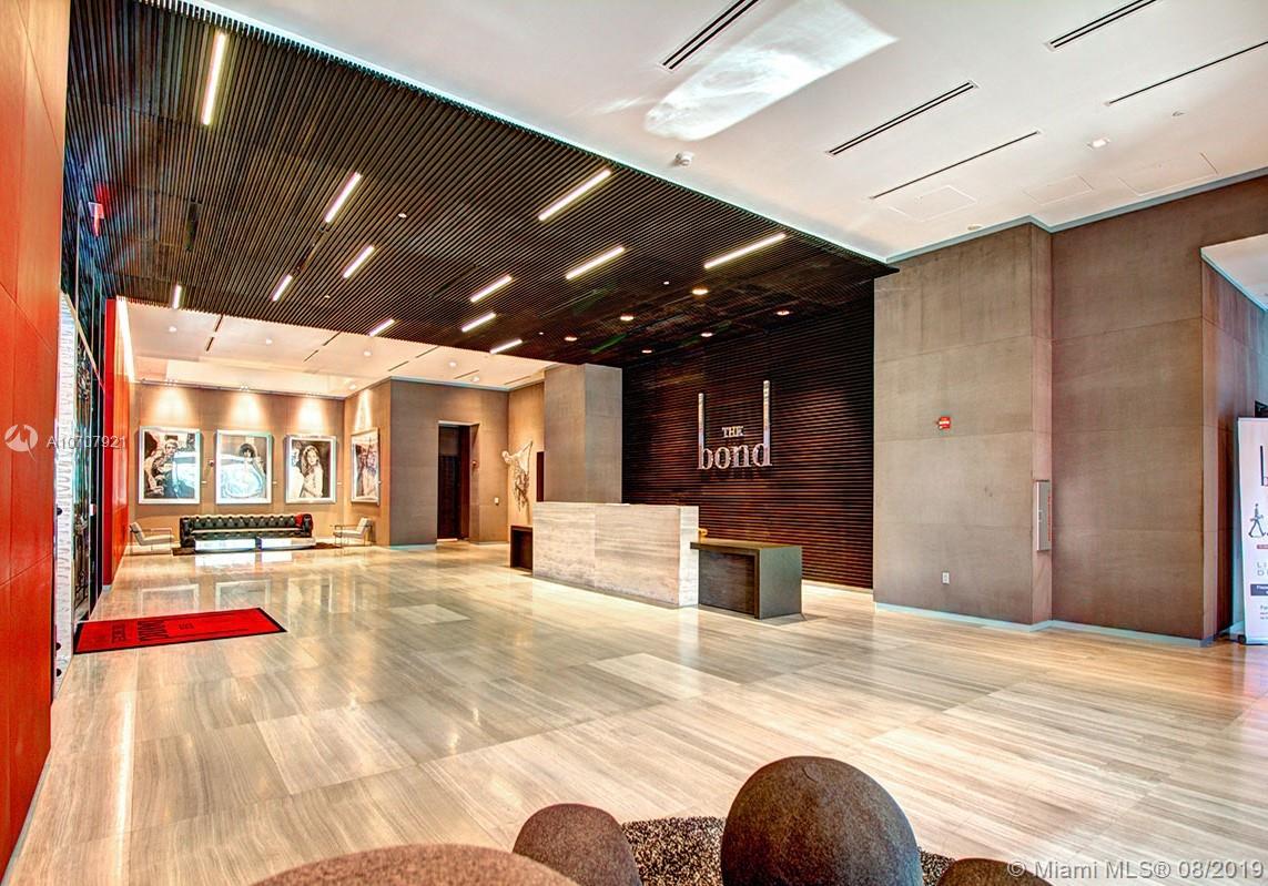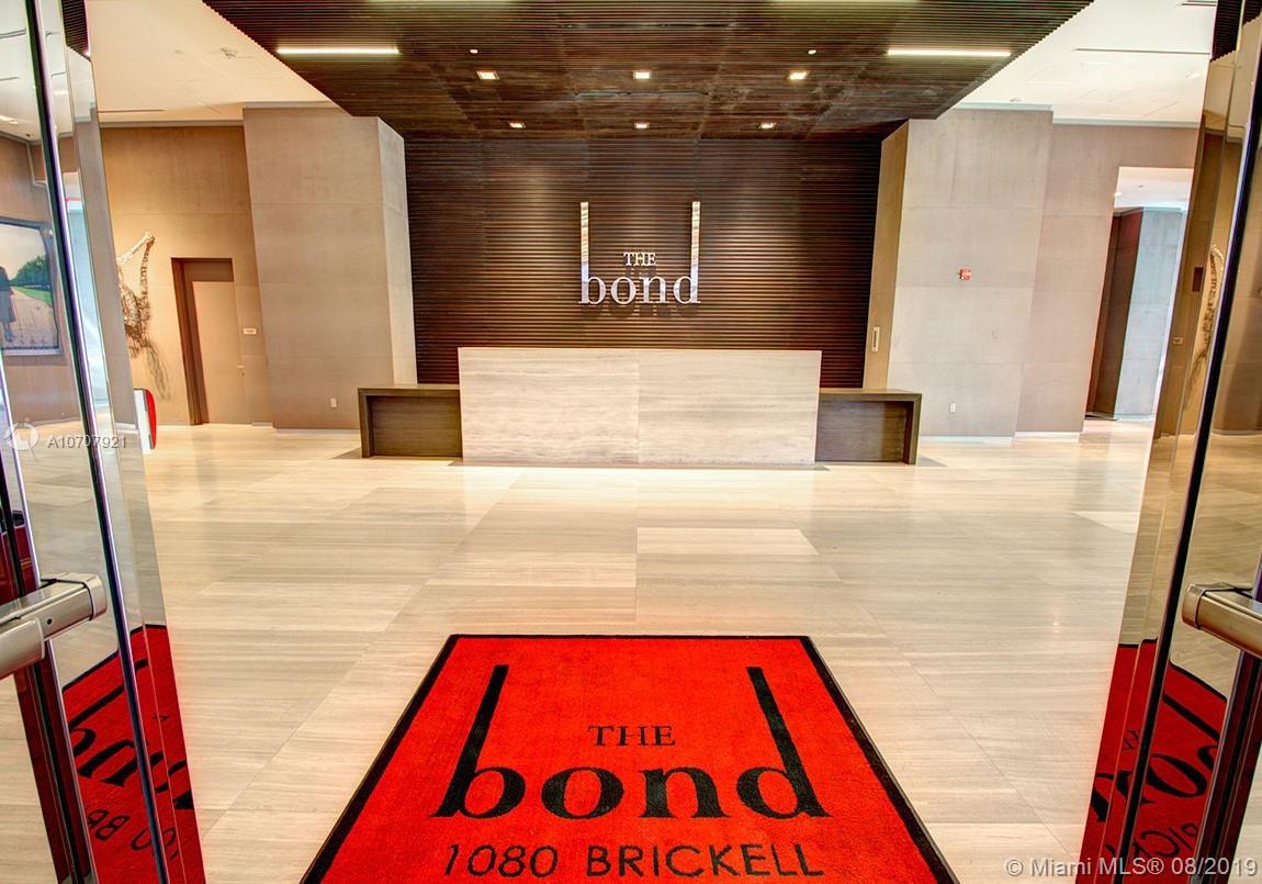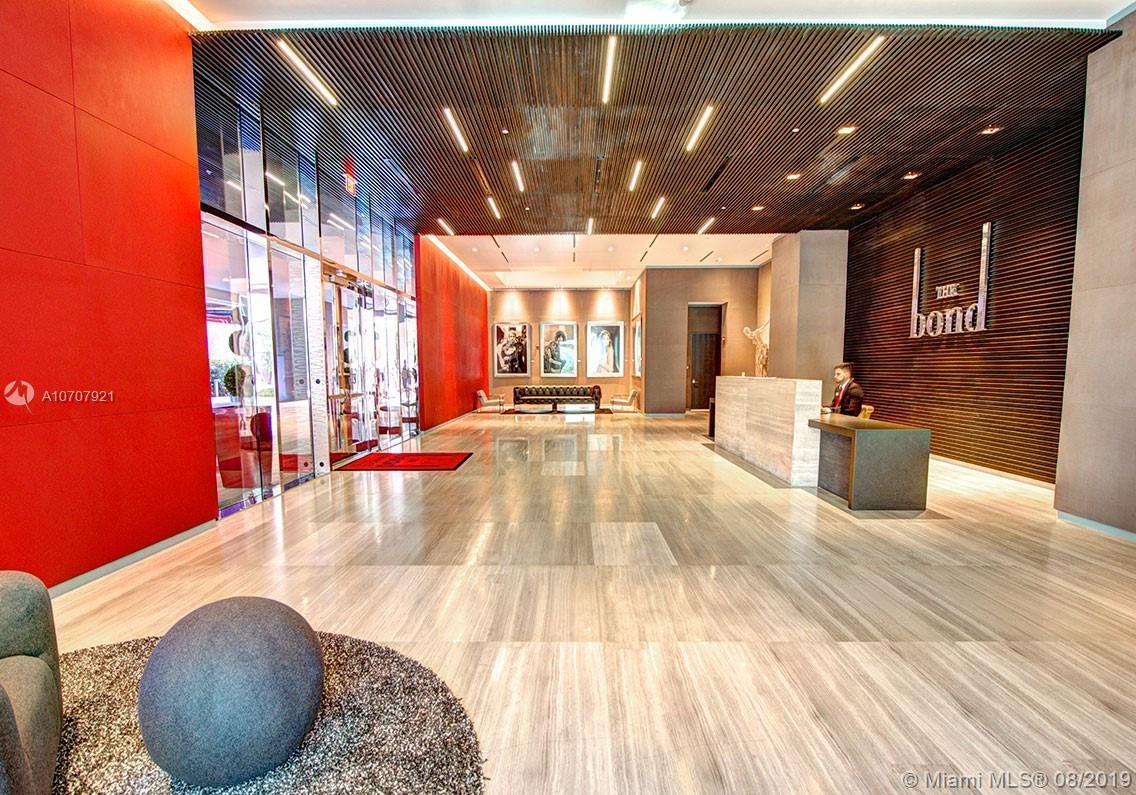 Spectacular condo at The Bond in Brickell offering 2 bedrooms and 2 full bathrooms, 9-foot high ceilings, spacious walk-in closets, Bosch appliances, expansive balconies. The amenities include a pool area with lush landscaping and waterfall, a zero-edge lap pool, cabanas, outdoor fireplace, BBQ area, club room, children’s playroom, fitness center, valet parking, business center and more. Ground level retail and more! The unit is in the SW corner of the building.