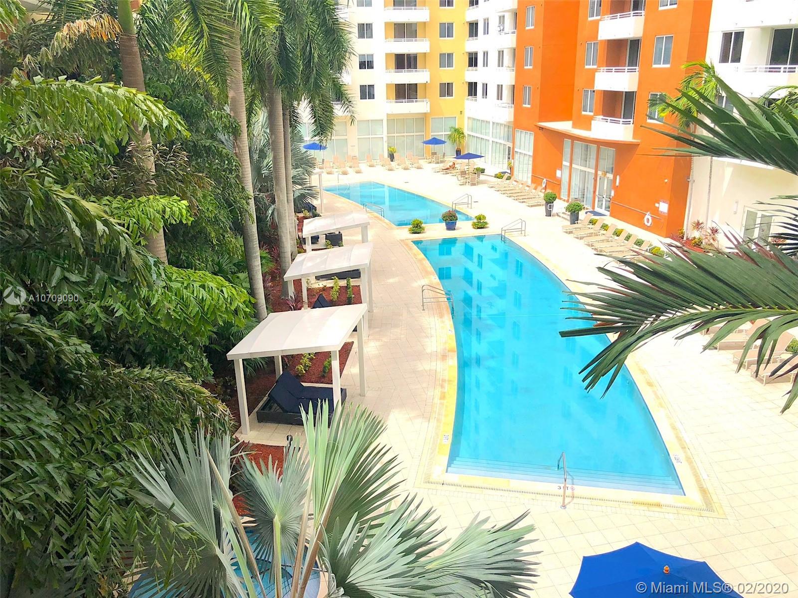 Beautiful 1/1 overlooking the pool deck, with high end wood floors throughout. EUROPEAN KITCHEN CABINETS, IMPORTED GRANITE COUNTERTOP, STAINLESS STEEL APPLIANCES. READY TO MOVE IN THIS HIGH FASHION BUILDING, 4 POOLS, VALET, BUSINESS CENTER, CLUBROOM , MOVIE THEATER BILLIARDS, GYM, STEPS FROM RESTAURANTS, SHOPS, BANKS, CHARTER SCHOOL, ETC..Excellent tenant in place until Sept. 30, 2020 paying $1700/mo, tenant would like to renew the lease for an additional year. Great rental investment!