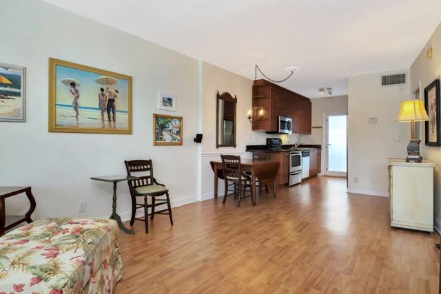Great beach location in unique boutique condominium, LE CERCLE BY THE BEACH! Renovated building, Hurricane impact windows and doors throughout, Euro style kitchen, granite counter tops in kitchen and bath, walk in closet, wood laminate floors throughout. Pet friendly building offers newly remodeled lobby, heated pool, BBQ area, exercise and community room, 8th floor sun deck, and bike storage. Great walkable neighborhood easy access to beach, shopping, restaurants.