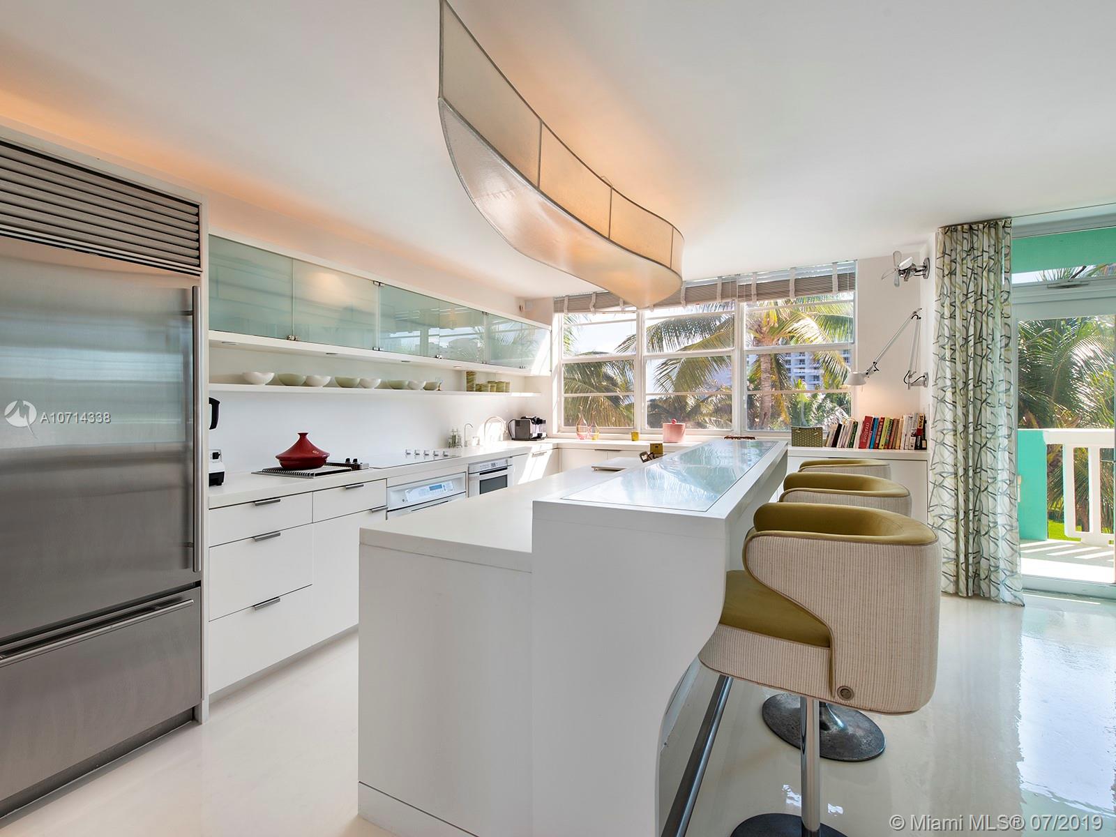 he quintessential South Beach designer apartment! This 2/2 + den/office has been wonderfully and fully renovated with a very smart layout. A large open kitchen and the only contiguous double balcony in the building. This apartment is flooded with light and filled with great design ideas. Impact windows, bedrooms that can be fully open, lots of closet space, designer furniture, built in balcony seating, large showers and more. You have the beautiful park and the Atlantic Ocean as you front yard. Quiet, discreet, well-run, boutique building with covered gated parking, electric car charging stations and direct beach access. Live the South of 5th life style; best restaurants, marina, park, shops and beach. You will love this very special apartment! Turn key and easy to show.