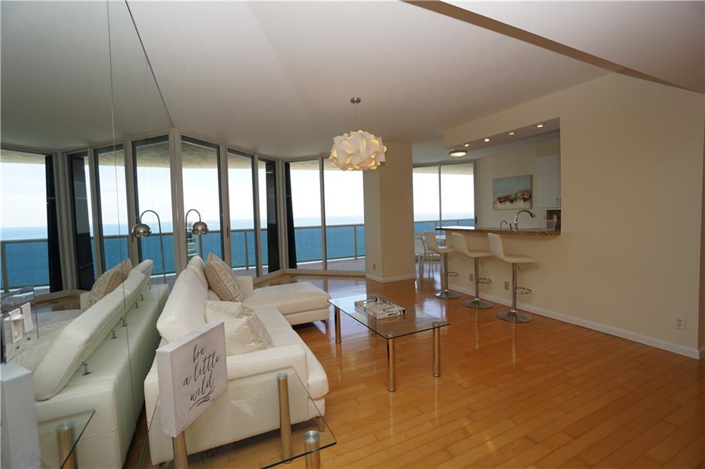 Ocean views, Ocean views from every room. 2 bed & 2 bath. Open floor plan with split bedrooms. Modern finishes. Freshly painted, new refrigerator, dishwasher and oven. RESORT-LIKE Complex with Tennis, pools, cafe,concierge,valet,beach attendant, cabanas,tikis huts,bbq area, private beach pavilion..2 pets , any size, ok.. EASY TO SHOW!