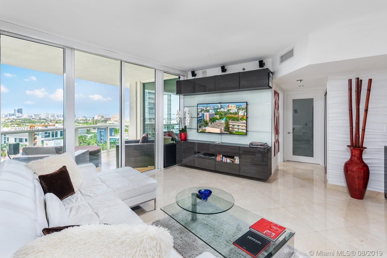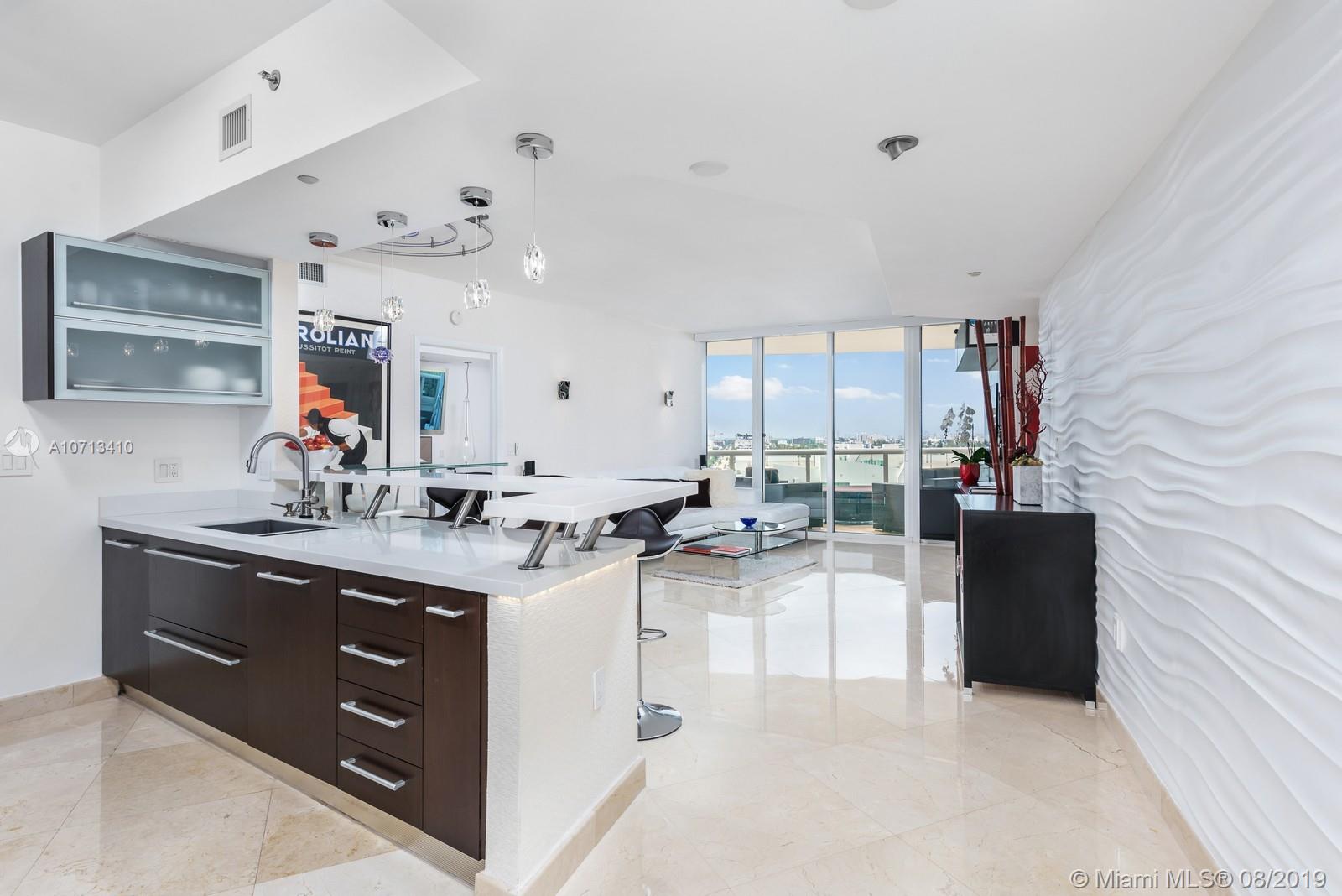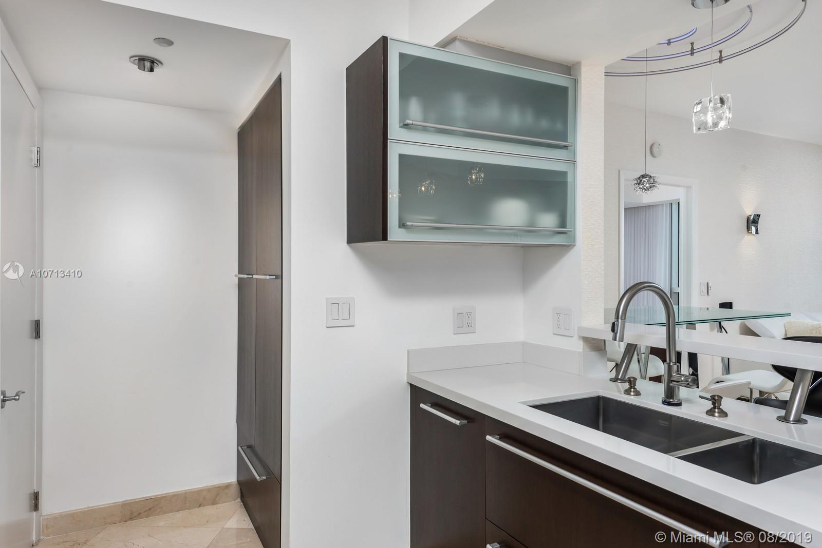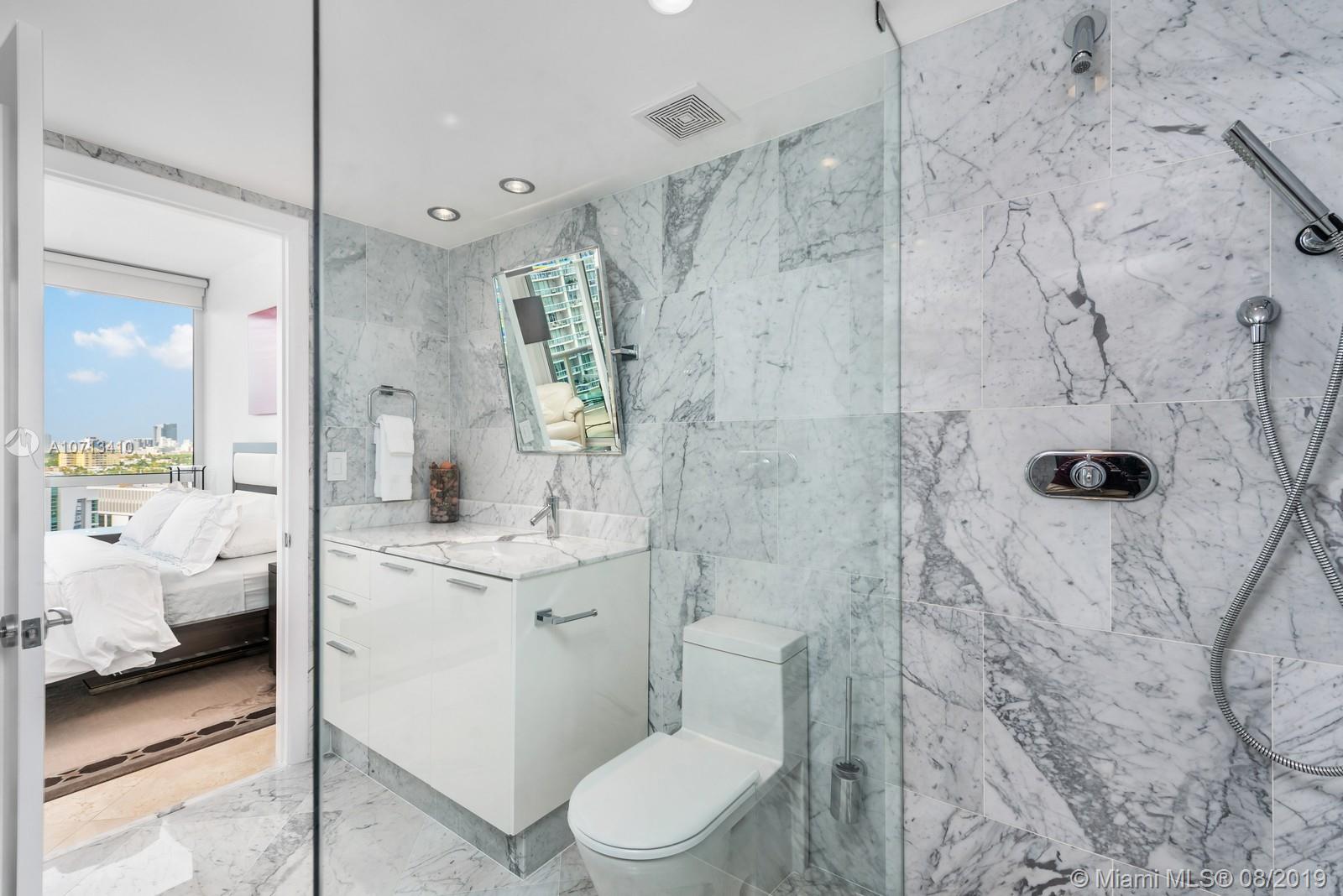 Impeccable unit completely renovated with the finest materials.Needs nothing & is presented with the utmost taste.This rarely available and spacious 2BR/2BA unit has the best Murano Grande has to offer!Open kitchen layout contains custom pull out pantry system,Sub Zero refrigerator, Miele oven, Jenn-Air induction cooktop,Double Blanco deep sinks,&touch faucet. Living room has built in entertainment and nest thermostat.Master contains full size stacked LG washer & dryer in custom closet with folding pocket door & is equipped with curtains & remote black out shades. Guest contains blackout & privacy shades.Both master and guest bath have floor to ceiling marble, Duravit appliances, & Stark fixtures. Enjoy amazing day and night views of the ocean & Miami Beach skyline from your vast terrace.