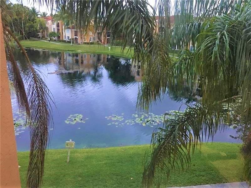 Great waterfront views. Corner Unit on 3rd flr. 2 Master bedrooms w/walk-in closets, Tile & wood laminate floors, new stainless steal appliances, 2yr A/C, breakfast nook, alarm, custom ceiling fan, privacy blinds, vaulted ceilings, big storage attic, washer & dryer. Gated community w/24hr security, pool, gym, jogging path, tennis & volleyball courts. Near Miramar City Hall business center, Not Subj to appraisal, COA fee incl: cable, roof, ext ins, water/sewer garbage. Equal Housing Opportunity.