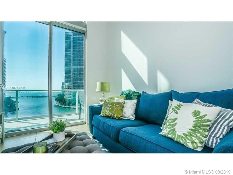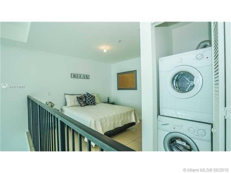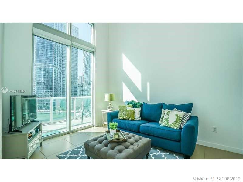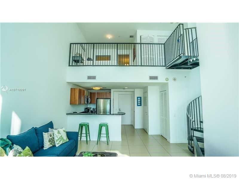 Amazing bay views from this 2-story Loft with South exposure. This one-of-a-kind unit offers 19'4" high ceilings, tile floors throughout, floor to ceiling black-out shades. Master bedroom upstairs. Granite counter tops, stainless steel appliances, top-of-the-line appliances. Water, basic cable and Internet included. One assigned parking space on the same floor. Walk to Whole Foods Market, Bayfront Park, metro mover and Novikov Bar & Grill Restaurant, Joe & the Juice downstairs and 17 screens' Silverspot Cinema. Building offers luxurious life style, 24-hr front desk attended. Chic downtown living at its best!