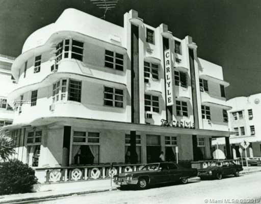Historic Art Deco Carlyle Hotel, renovated NW corner one bedroom. Fully furnished with W/D in unit, currently leased nightly-short term. Daily rentals allowed, providing consistent income producing investment at the desirable Ocean Drive vacation area. On site Valet, Lobby Bar/Restaurant & Ice Cream café. Onsite Concierge & elevator, steps to the beach.