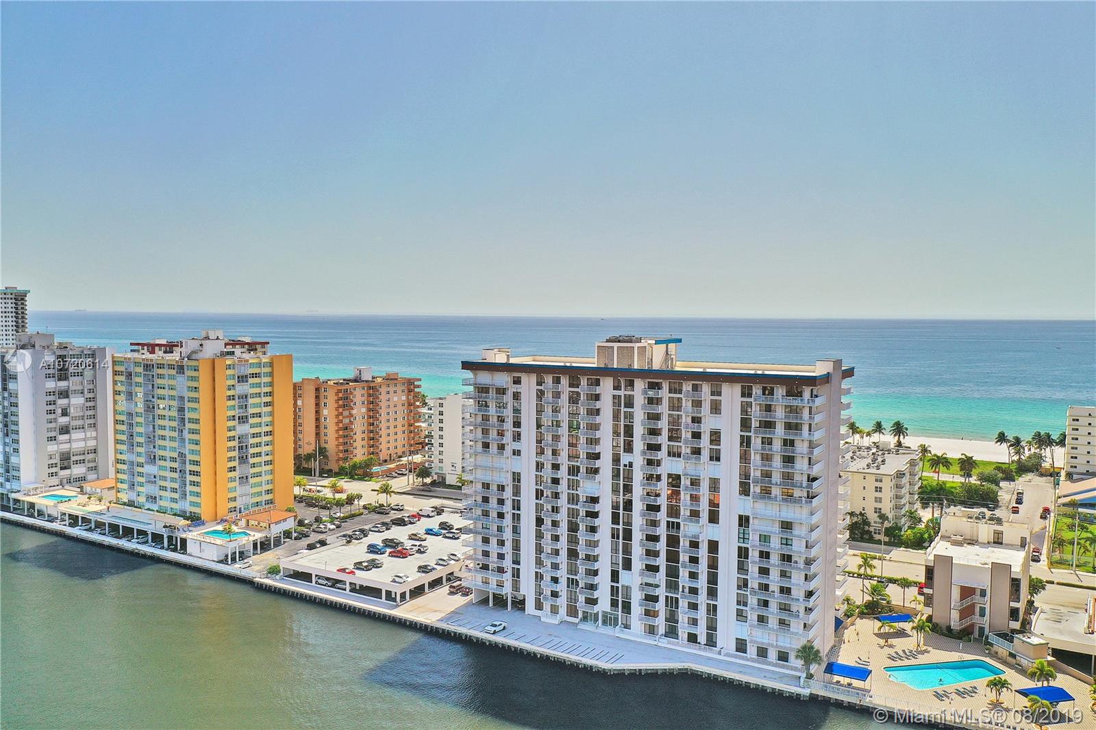 Highly DESIRABLE CORNER condo with FANTASTIC water views of both the INTRACOASTAL AND THE OCEAN. Spacious condo with split floor plan, floor to ceiling IMPACT windows, HUGE MASTER SUITE WITH MULTIPLE CLOSETS, the master bath boasts a sophisticated floorplan with private room for commode; neutral colors embrace any decor you desire. SUNRISE AND SUNSET VIEWS FROM THE LARGE WRAPAROUND CORNER BALCONY PROVIDING beautiful BREEZES FROM THE EAST, NORTH AND WEST - WITH VIEWS TO DOWNTOWN FT LAUD, WATCH THE AIRPLANES LAND AND THE BOATS GO BY. Steps to the beach & Margaritaville, Diplomat Resort, minutes to Gulfstream, Aventura, Hard Rock, Airport and Port Everglades. 40 yr inspection completed in 2016; 24 hour doorman, 1 covered parking space, full amenities -gym, sauna, heated pool