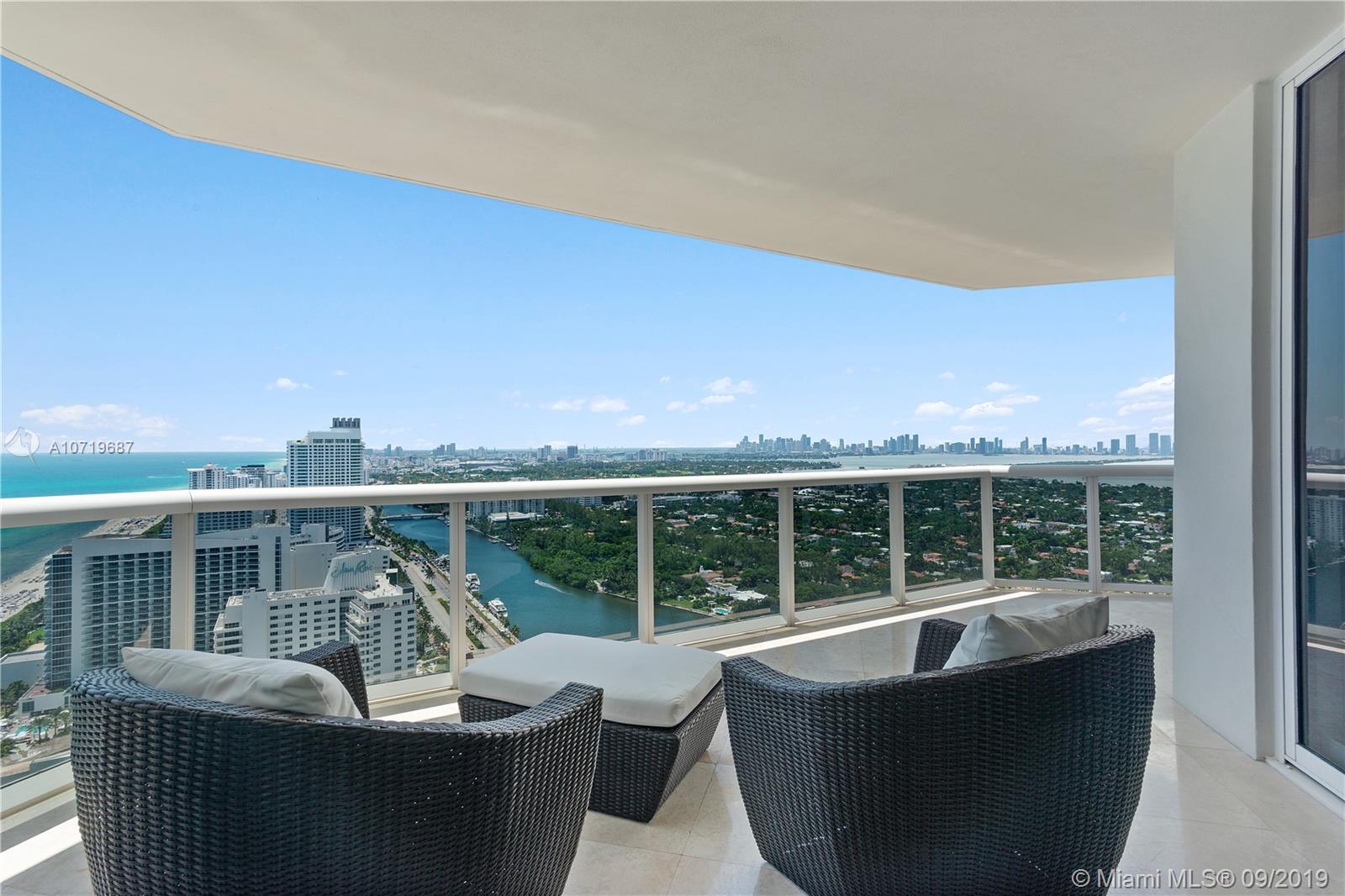 Enjoy breathtaking unobstructed views of the ocean, bay and city skyline from this large 2 bedrooms, 2 baths residence that boast 1,490 Sq.Ft. Located in prestigious Green Diamond Condo this unit sits way up high on the 38th floor. Split floor plan, large master suite, with spacious walking closet. The Master Bathroom with Jacuzzi & separate shower. All rooms leading to a big terrace overlooking the city and ocean. With its unparalleled location, the Blue & Green Diamond is one of Miami Beach’s most sought after addresses. Enjoy luxury beachfront living with five-star resort-style amenities including 24-hour security and valet, lighted tennis court, large pool, spa, fitness center equipped with the latest technology, poolside café and more.