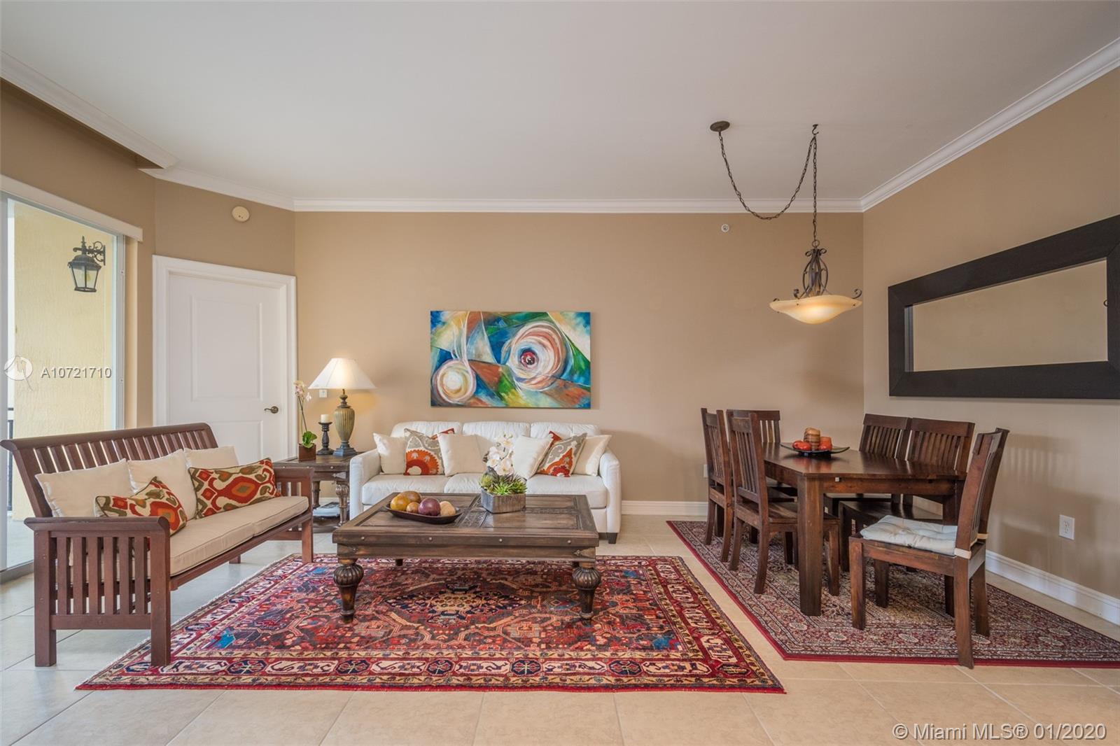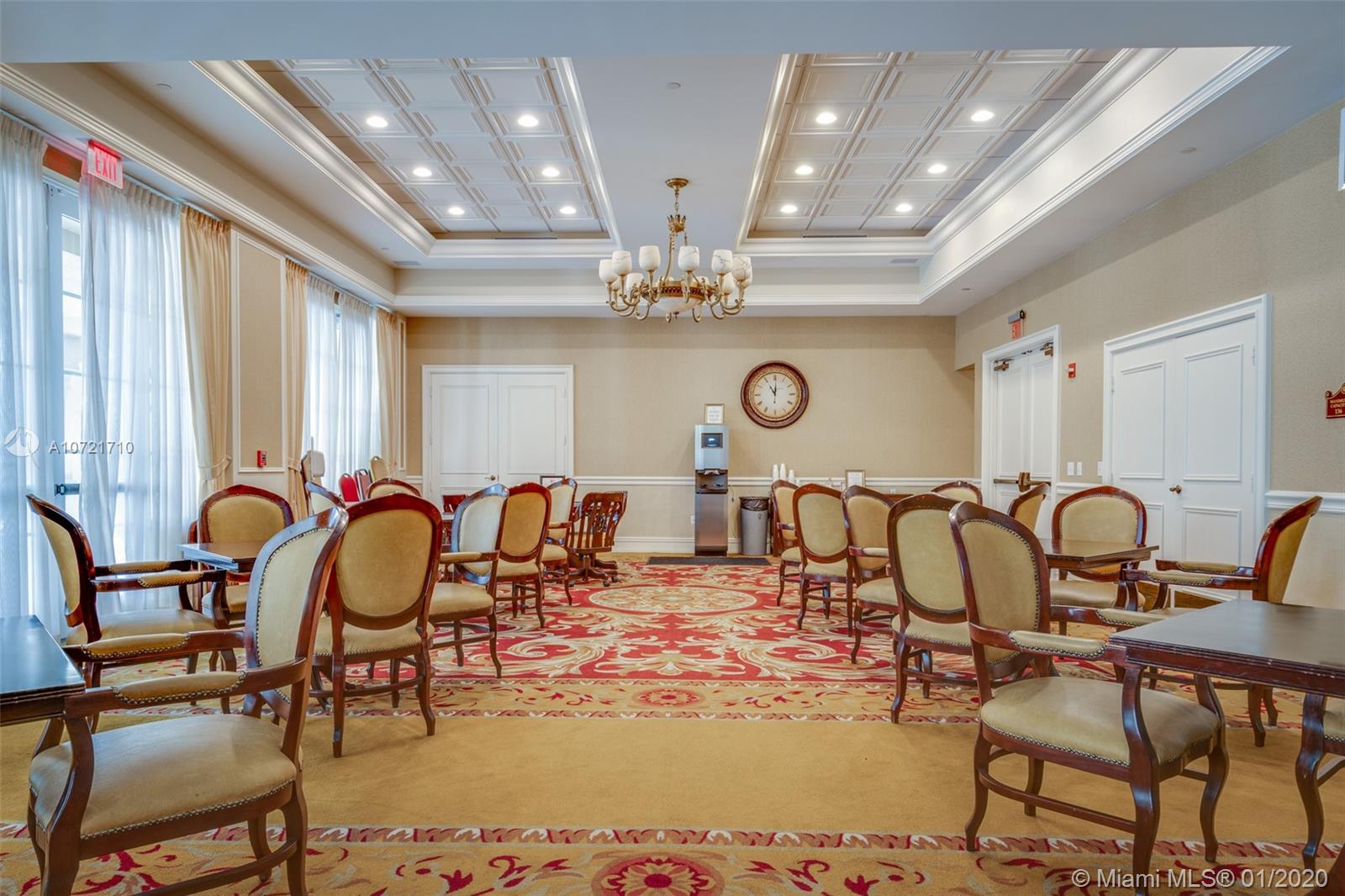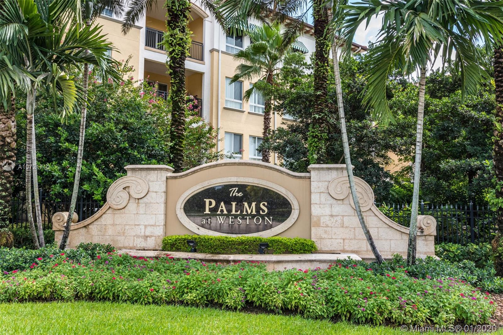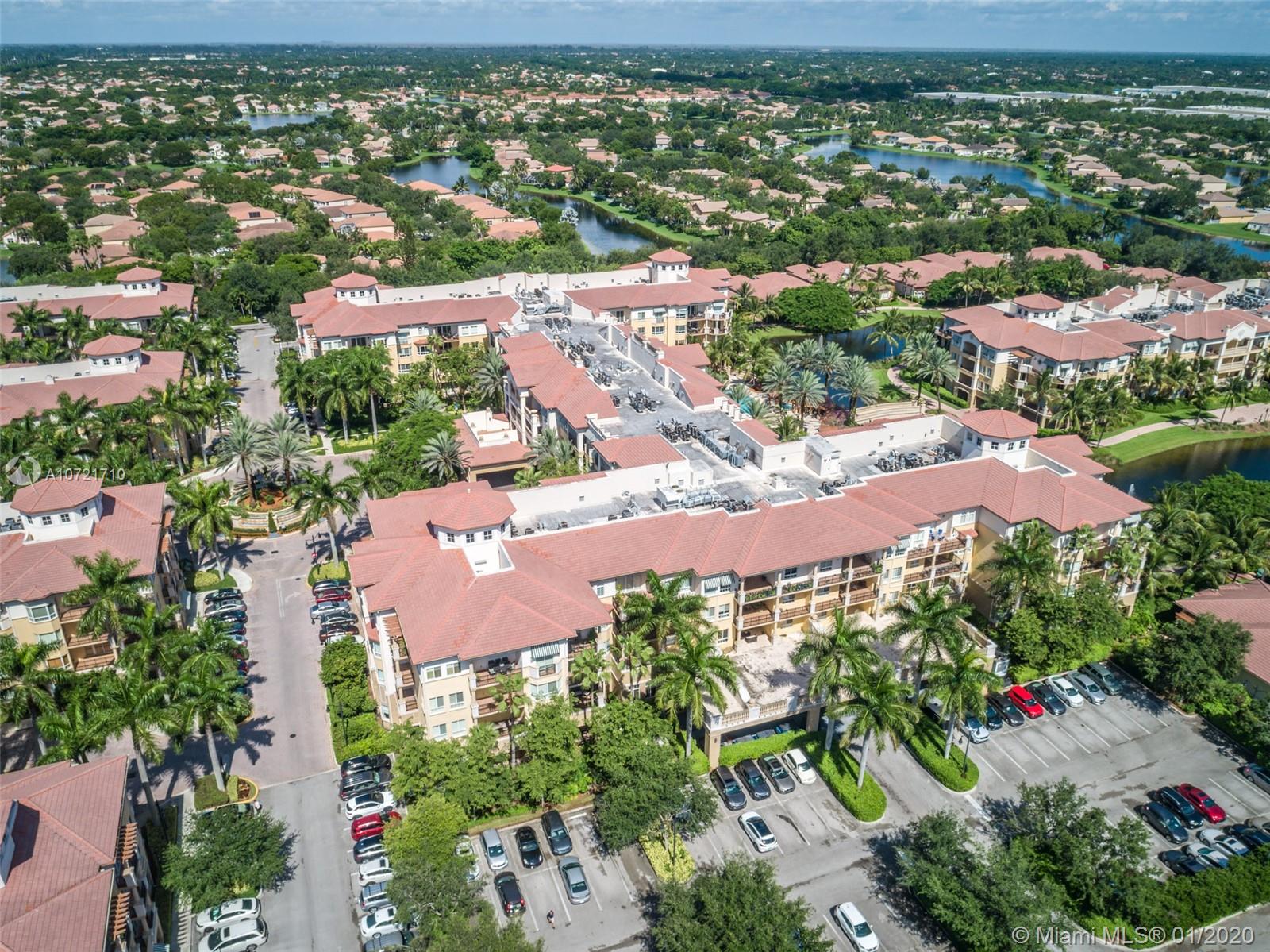 ONLY CONDO FOR SALE WITH A PRIVATE HUGE TERRACE/SOLARIUM! Lovely 2 beds, 2.5 baths condo in Weston's exclusive 55+ community. Features impact windows, high ceilings, crown moldings, upgraded wood cabinets, granite counters, SS appliances, and tucked away half bath; the living, dining and kitchen area are completely OPEN CONCEPT, with a kitchen peninsula, not a pass-through. Big Master with great walk-in closet, bathroom, shower and jetted tub. Covered patio and deeded storage room. LOCATED IN THE CLUBHOUSE BUILDING, you can enjoy the amenities , rain or shine! Pool, restaurant, bar, well-equipped gym, beauty salon, card room, library and more. See aerial video to appreciate the amazing location. $180/quarter credit for on-site restaurant. PERFECT REFUGE FOR WINTER TIME, SAFE & FUN!
