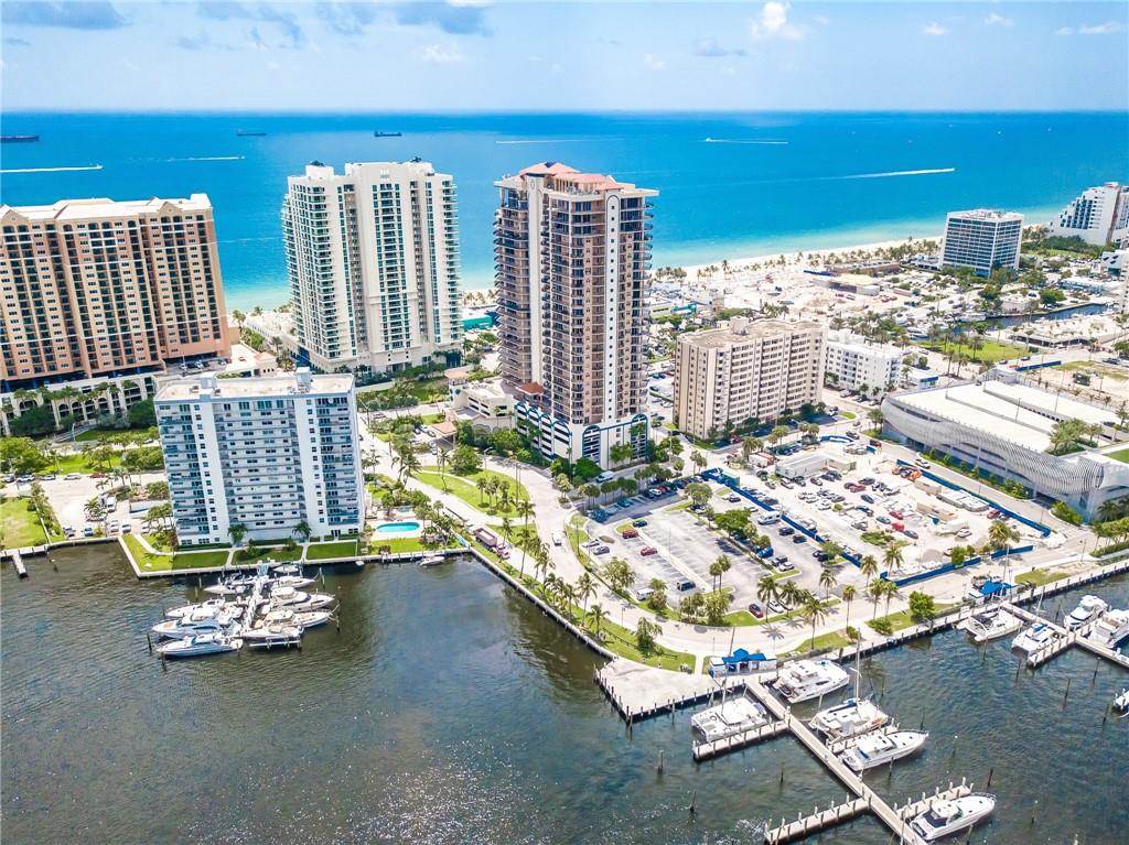 Breathtaking Ocean, Intracoastal AND City views from this SE Corner Unit! Tremendous wraparound balcony offers multiple options for outdoor living space. Jackson Tower is nestled in a prime location between the Las Olas Marina Project, the $49 Million Las Olas Beach Park Project and Fort Lauderdale Beach! The new Marina sits next to Jackson Tower and will feature 68 boat slips and 2 new restaurants. The Las Olas Beach Park Project is adding open green space, inviting gathering spots and a tree-lined promenade. Two bedrooms, 2.5 bathrooms plus a bonus room that could be used as a third bedroom or office. Luxurious lobby with elevator entry directly into the unit. Two parking spots, pet friendly building, fitness center, 7th floor heated outdoor pool and spa and on-site management office.
