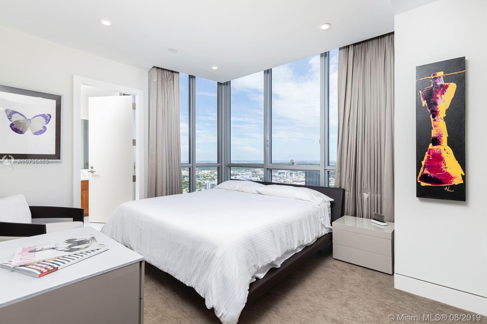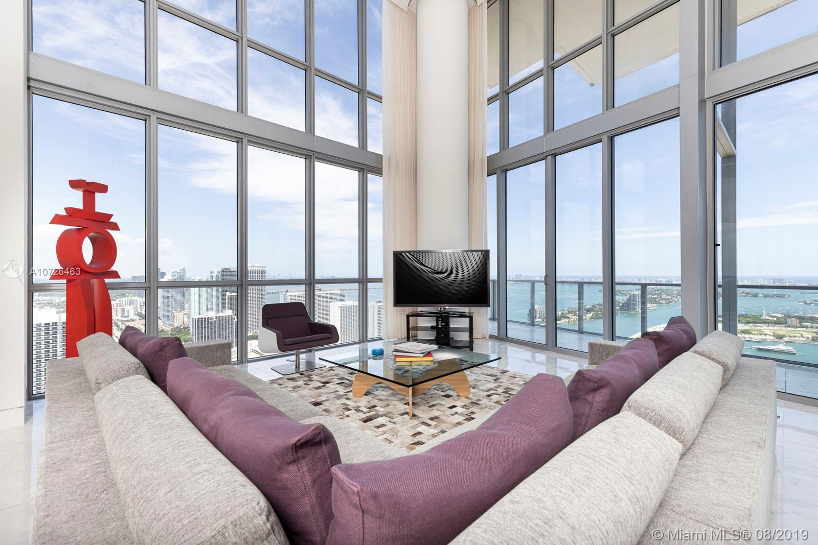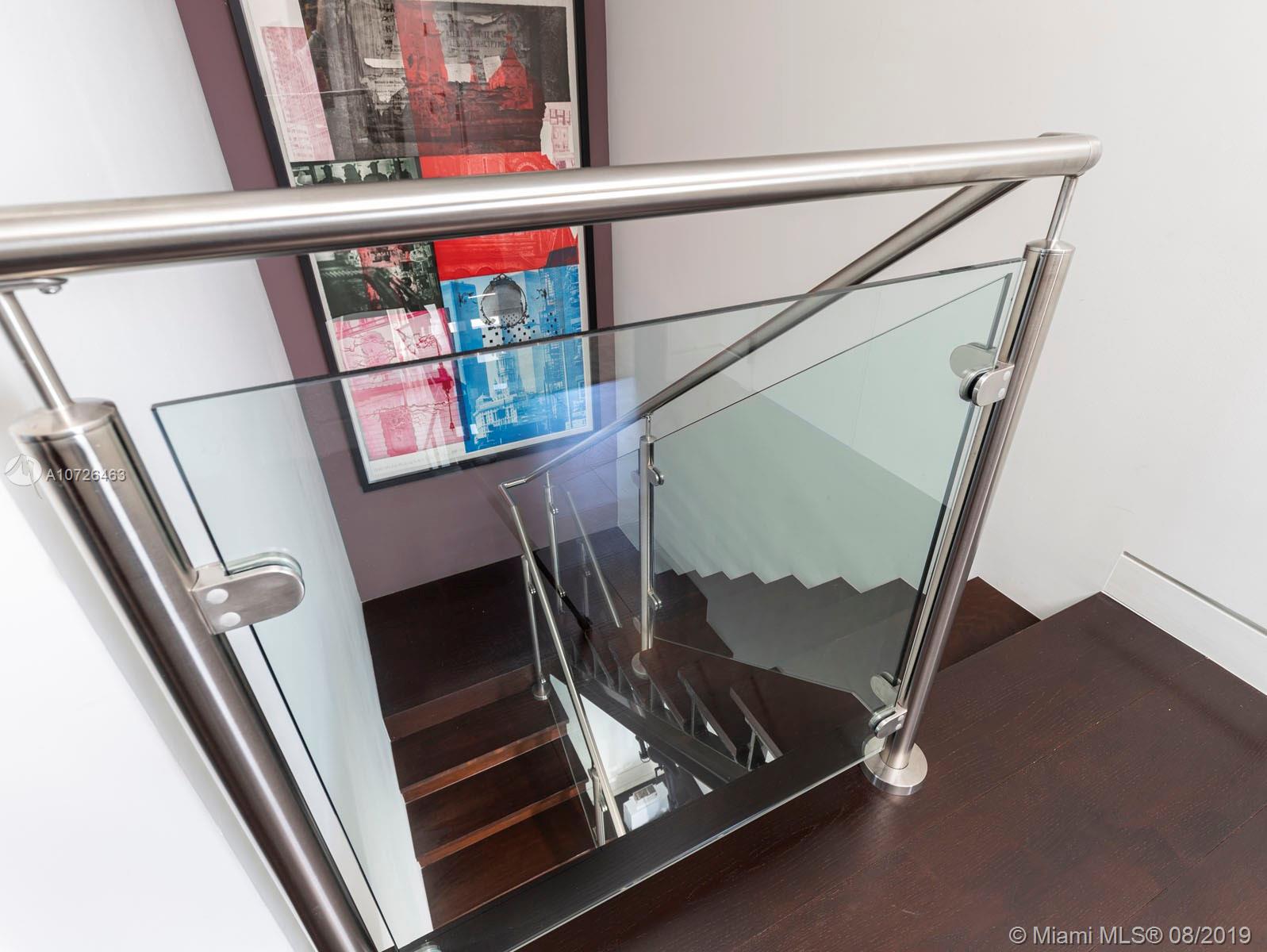 A masterpiece of design this 2 story unit has spectacular, expansive views of the Bay and City. Floor to ceiling impact windows throughout this rarely available, completely redesigned, combination of 2 residences. Upstairs master bedroom constructed with glass panels to take advantage of the views, 2 custom WIC, remodeled bathroom with 2 water closets and Waterworks tub. Additional features include: Crestron A/V system controlling all LED lights (inc. Multi-colored LED light strip in soffit of Living Room) drapes, climate, music (built in speakers in every ceiling) video, etc.; Kitchen has 2 Subzero refrigerator/freezers; 2 Miele dishwashers, 2 Subzero wine coolers with wet bar. Separate utility room, large storage room, 2 storage bins & 2 parking spaces. This unit is not to be missed!
