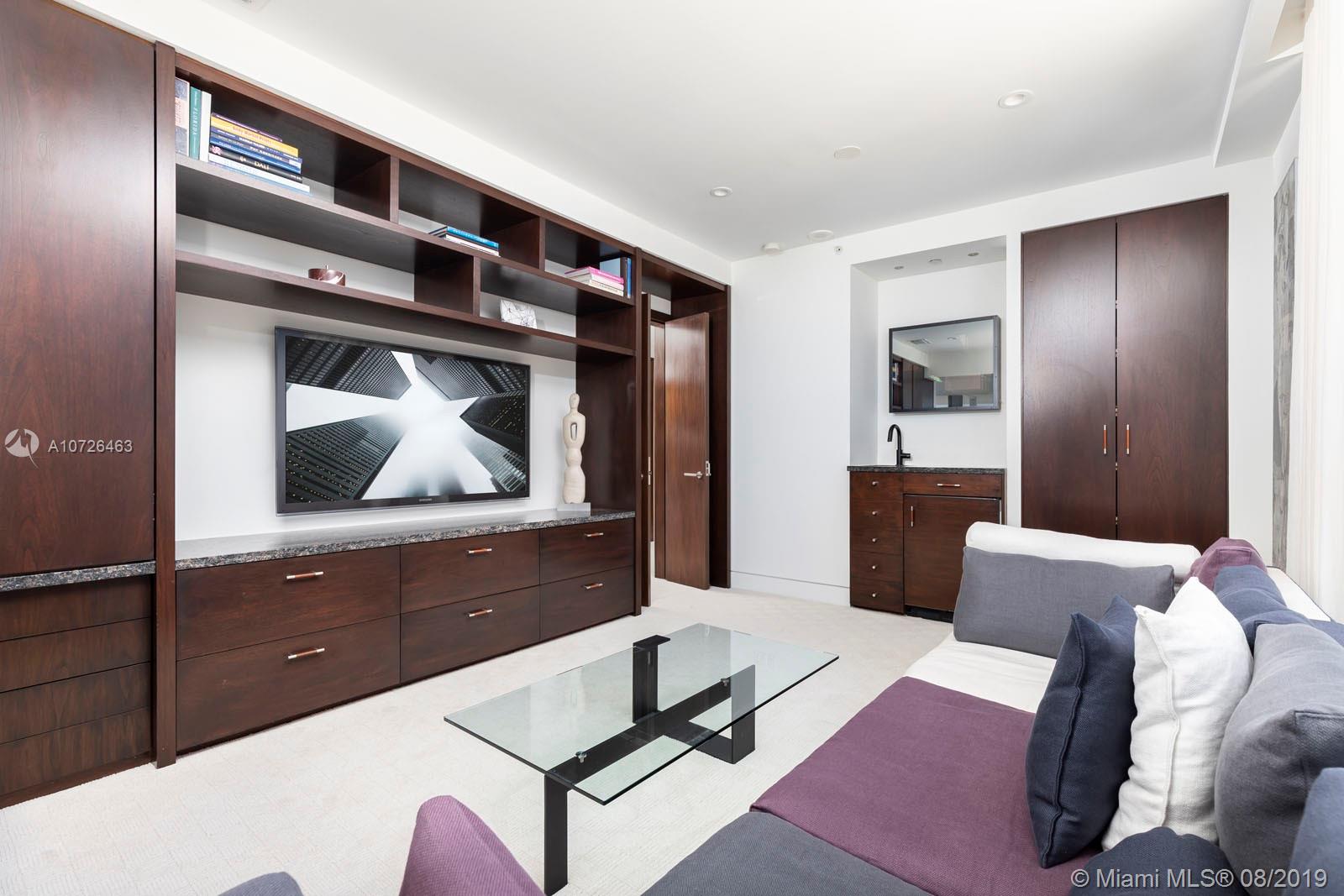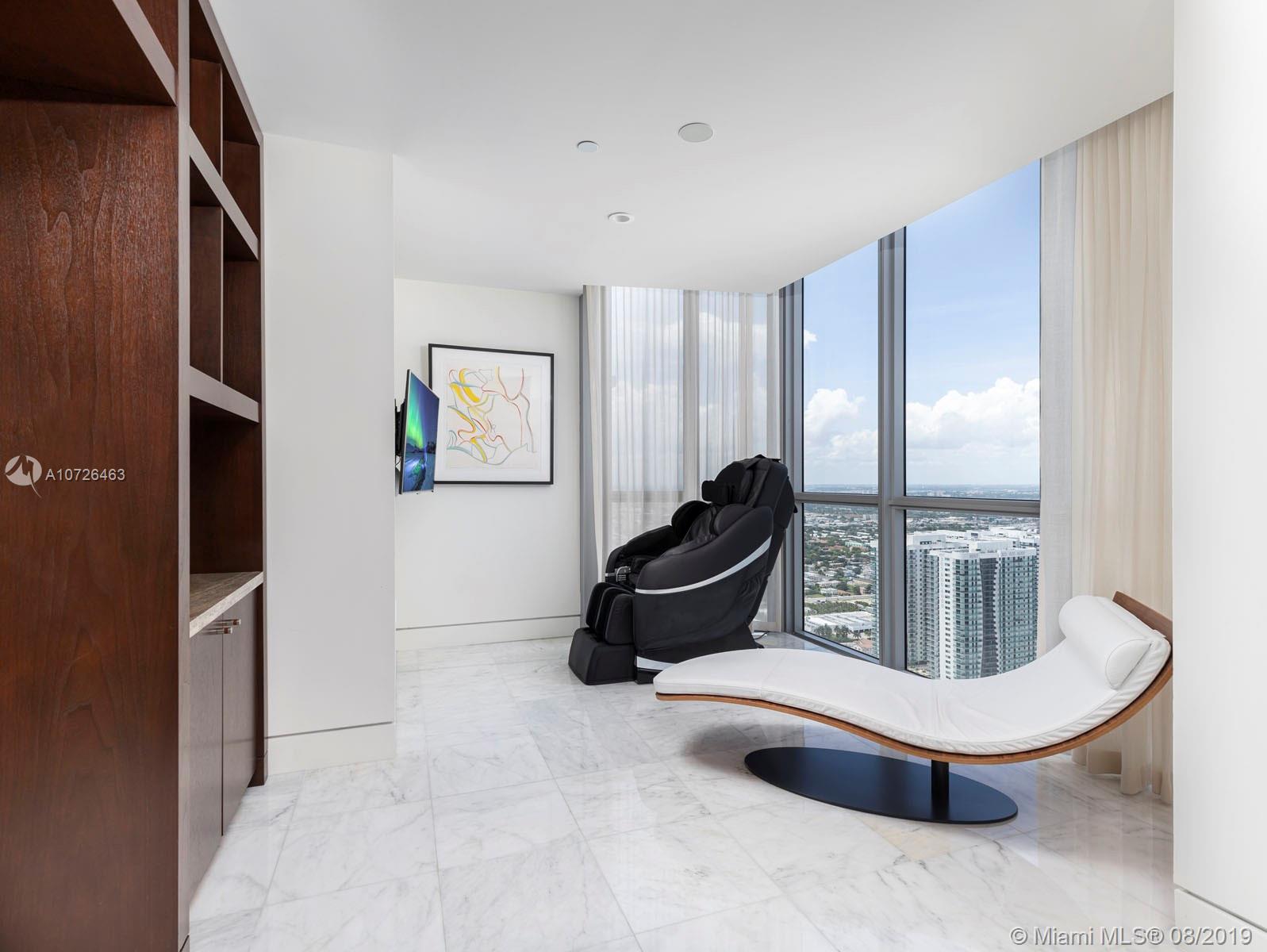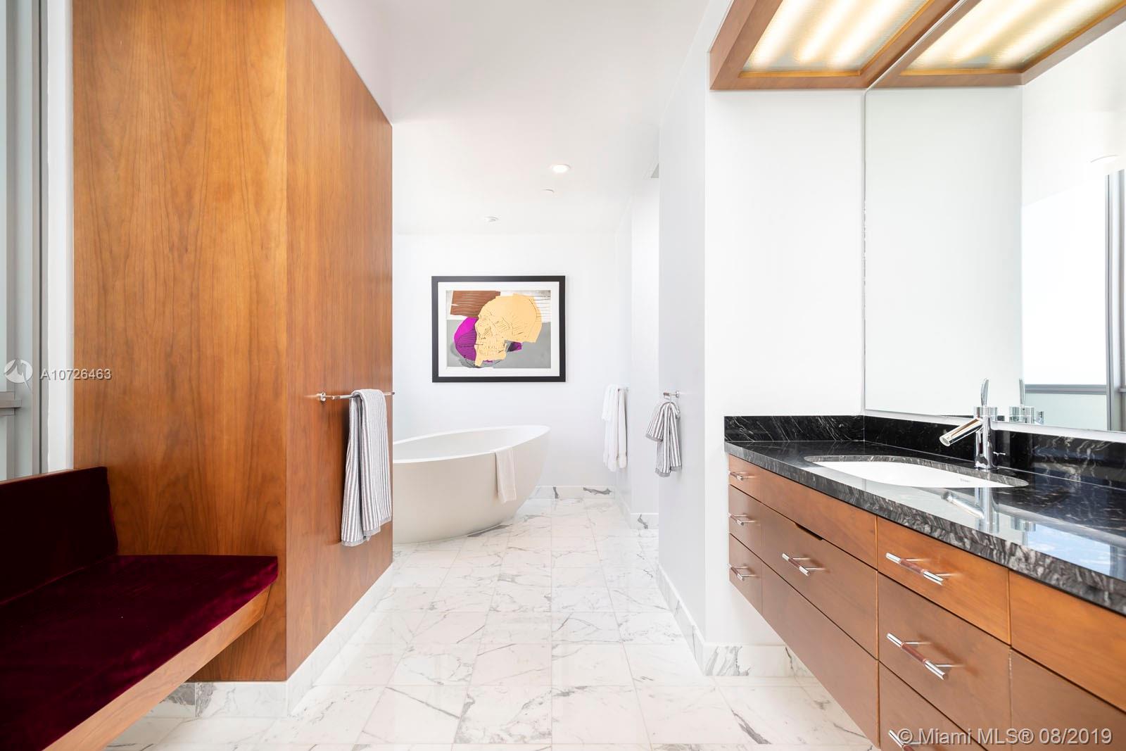 A masterpiece of design this 2 story unit has spectacular, expansive views of the Bay and City. Floor to ceiling impact windows throughout this rarely available, completely redesigned, combination of 2 residences. Upstairs master bedroom constructed with glass panels to take advantage of the views, 2 custom WIC, remodeled bathroom with 2 water closets and Waterworks tub. Additional features include: Crestron A/V system controlling all LED lights (inc. Multi-colored LED light strip in soffit of Living Room) drapes, climate, music (built in speakers in every ceiling) video, etc.; Kitchen has 2 Subzero refrigerator/freezers; 2 Miele dishwashers, 2 Subzero wine coolers with wet bar. Separate utility room, large storage room, 2 storage bins & 2 parking spaces. This unit is not to be missed!