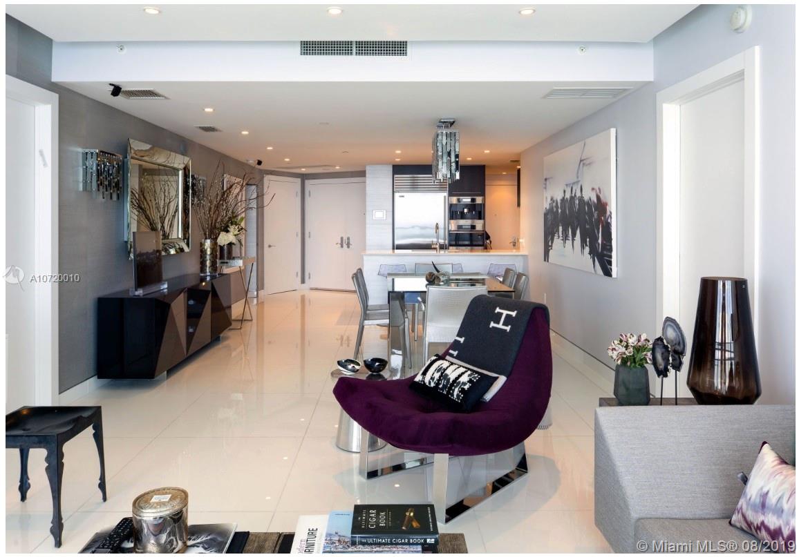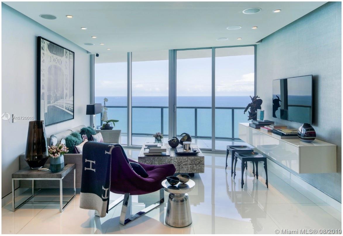 Unobstructed panoramic views of the Ocean. Private elevator that leads you directly to the unit. Exquisite interior designed with top of the line modern furniture. All top of the line appliances. Modern Snaidero kitchen cabinets and quartz countertops. Walk in closet. Floor to-ceiling impact windows. Master bath with shower, separate tub, and double vanity. Enjoy all the exclusive 5-star service & amenities: business center, full service spa, state of the art gym, social rooms, infinity edge pool overlooking the ocean, children’s play room, bar/café, 2 assigned parking spaces. Furniture can be negotiable. MUST SEE