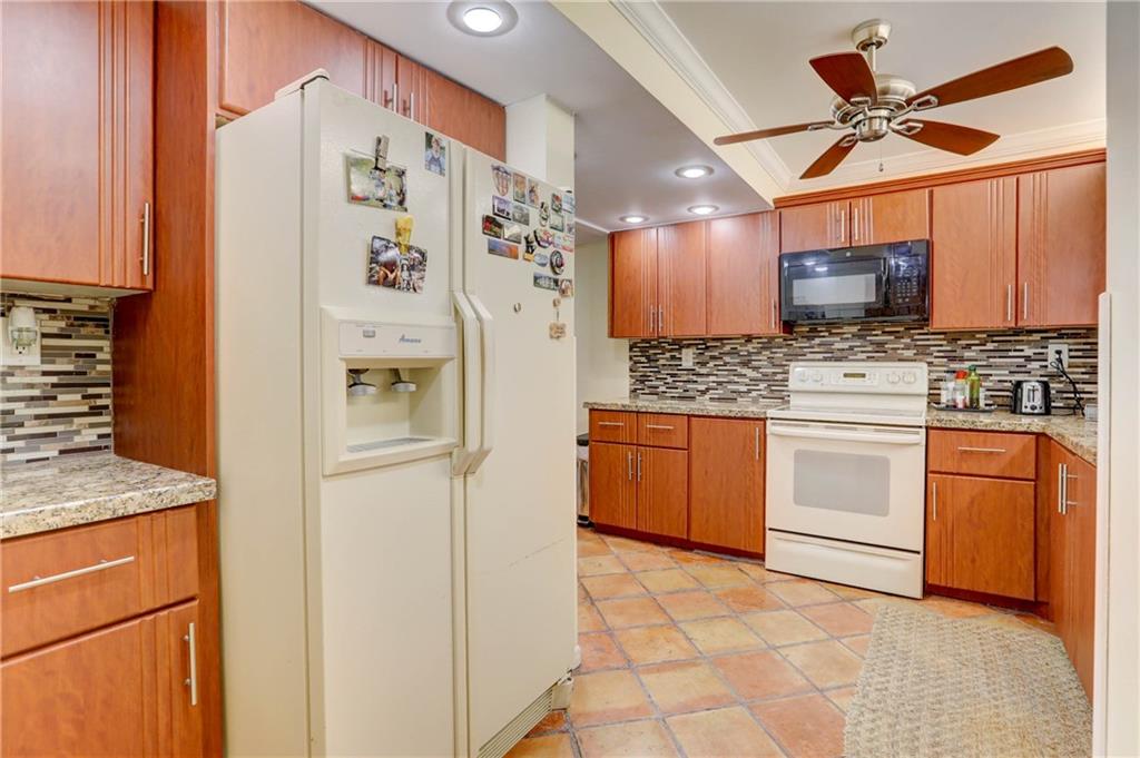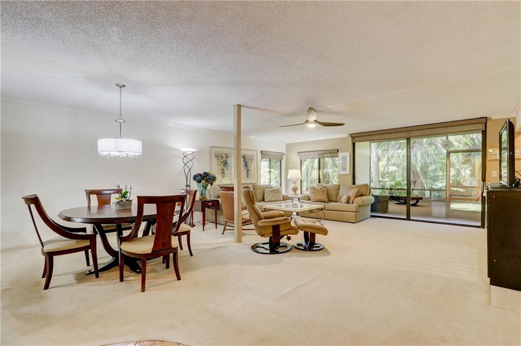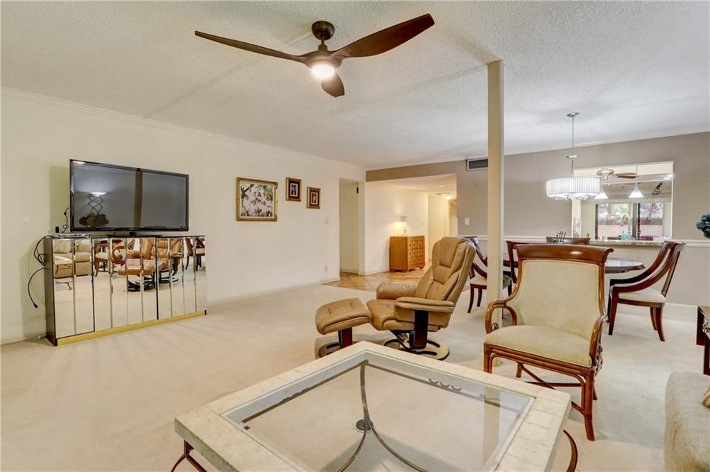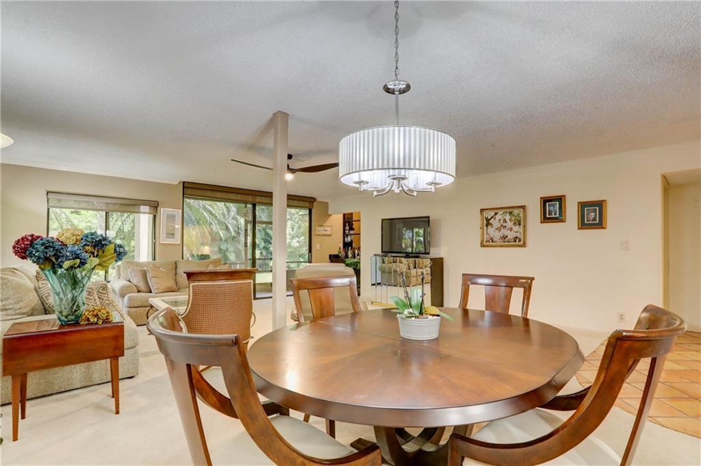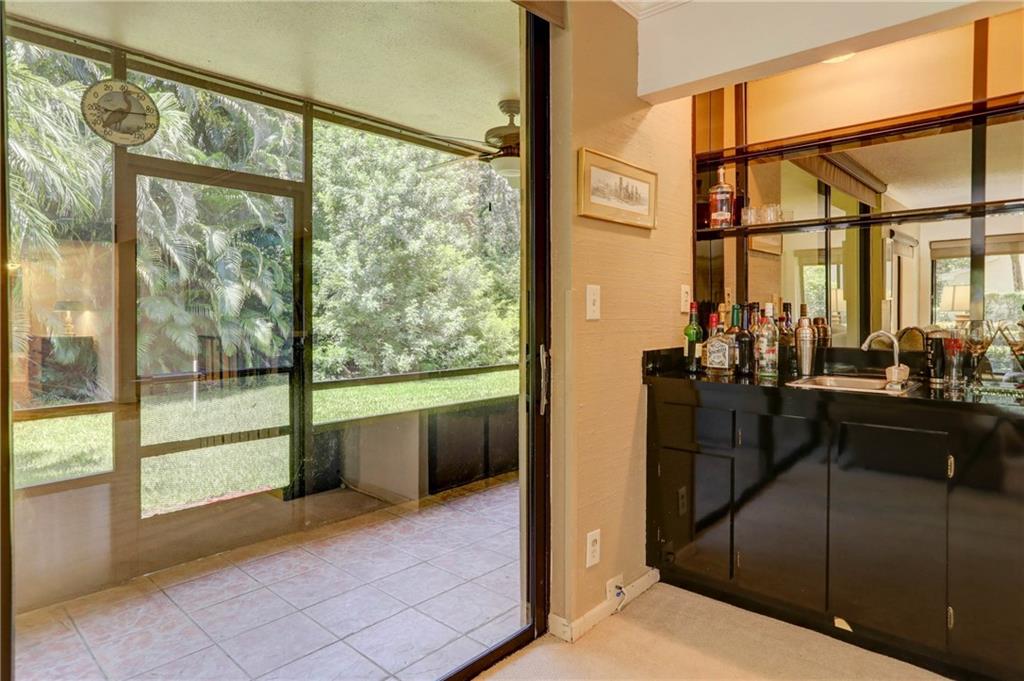 Fantastic 2 bedroom 2 bath with 1500 sq ft in gated community, Fountains of Jacaranda! First floor, corner unit providing complete privacy! Patio area in the front off the kitchen. Large screened in patio in back. Open floor plan. Updated kitchen featuring granite counter tops, full glass tile back splash, wood cabinetry & breakfast nook. Crown molding. Wet bar, great for entertaining in the family room. Over sized master bedroom & walk in closet. AC replaced in 2016. Tank-less water heater. Remote control blind in family room. Blinds installed within last 5 years. Washer/dryer. Storage closet. Community pool and club room. Fantastic location!