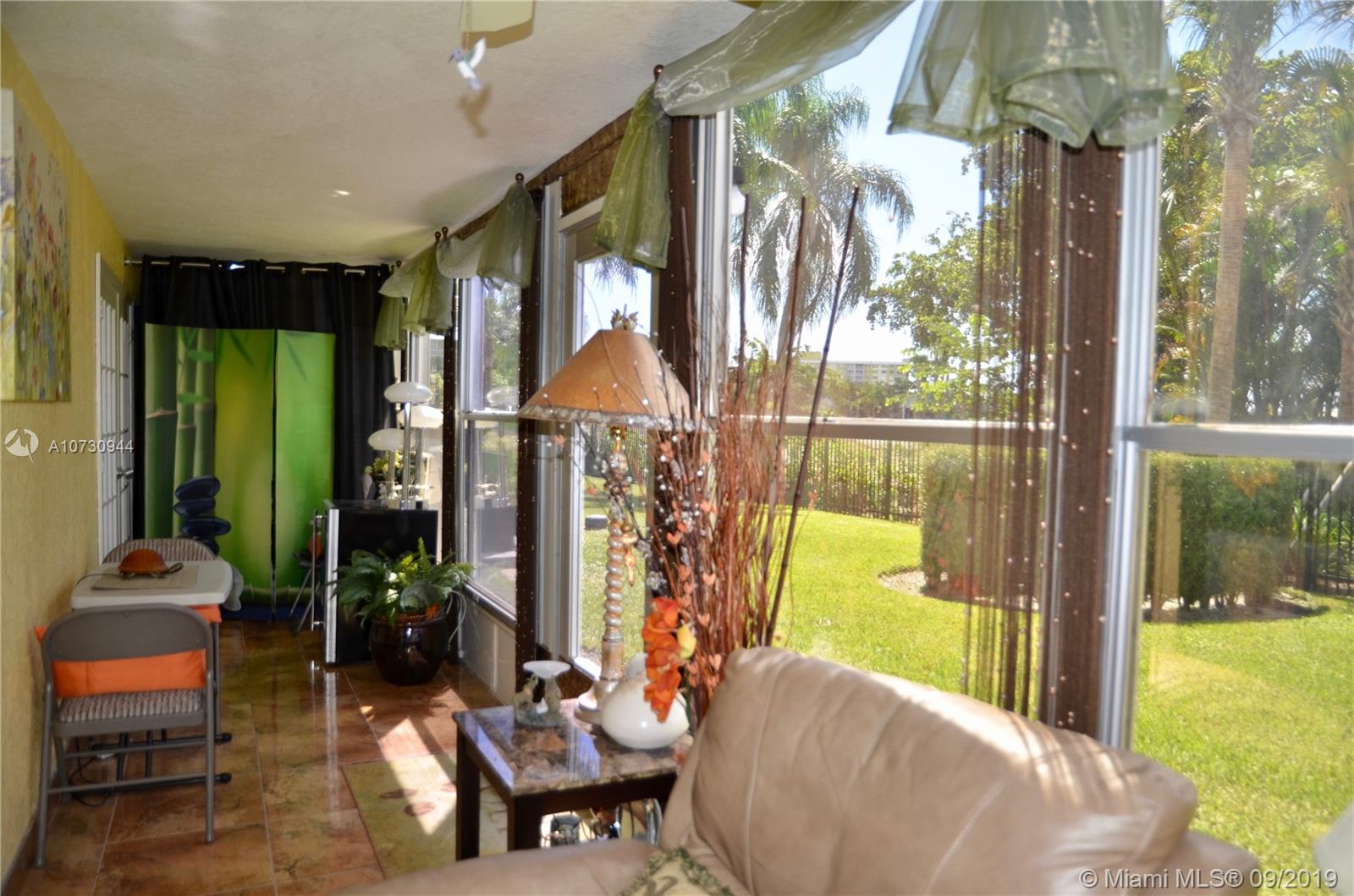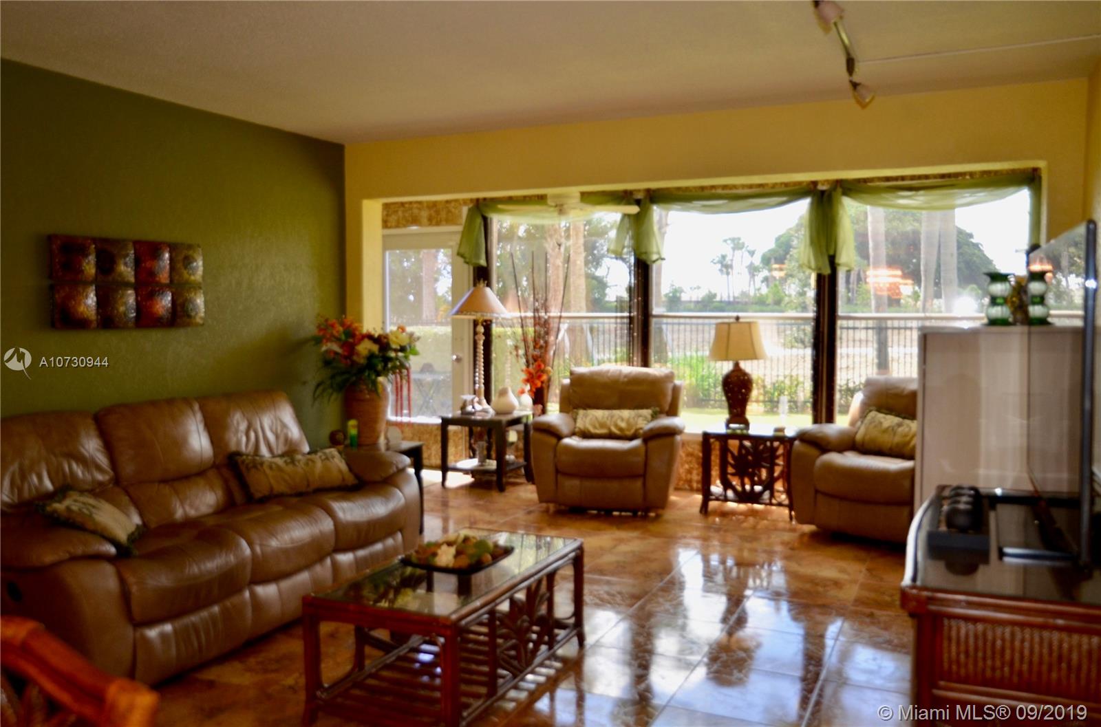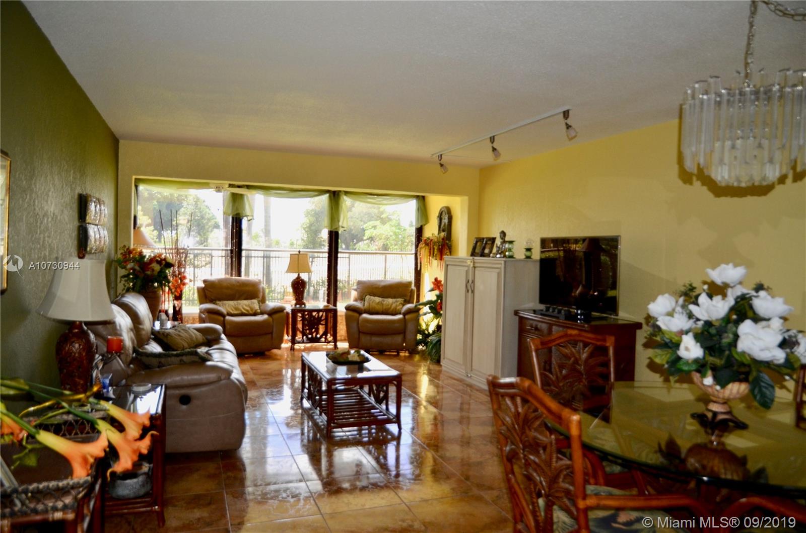 Beautiful large unit directly on the first floor at the Hillcrest in Hollywood. New tile floor throughout this 2 bedrooms and 2 bathrooms with enclosed patio. Will sell furnished and turnkey. Park right in front. Located next to the gym, the pool and the bbq's.. Close to the beach, the restaurants and the stores. Area with new developments and lots of green. No neighbor in the back, views of the new walking path and park.