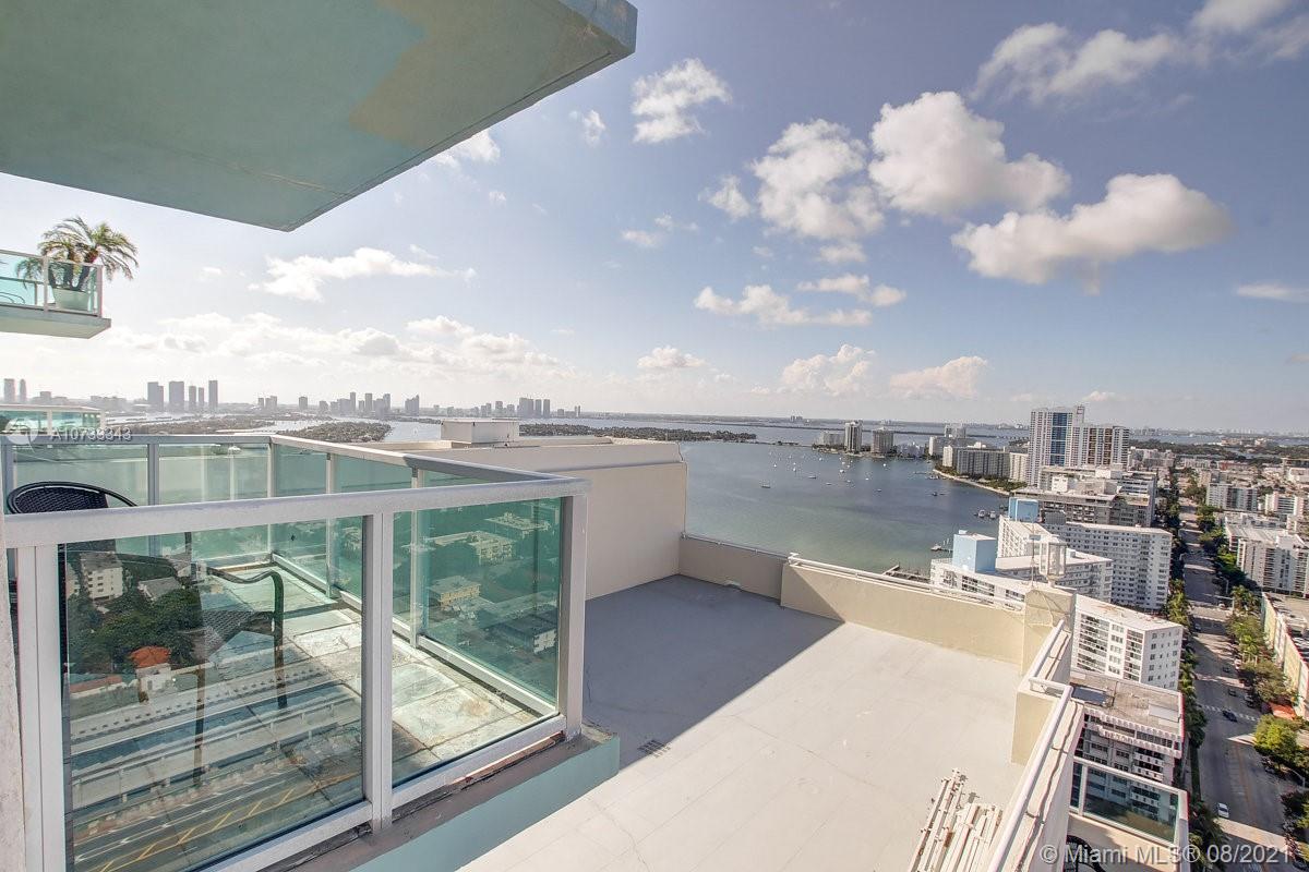 Large corner Penthouse in South Beach with higher ceilings and multiple balconies. This 2 Bedroom/2.5 Bath residence boasts a total of 1700 sqft including balconies. Some highlights include marble and wood flooring, an open gourmet kitchen, two assigned/covered parking spaces and expansive east and west views. The Floridian is a luxury and full amenity building with two bay front pools, tennis, poolside food/beverage, concierge, gym, onsite gourmet market, salon, a well run management, 24 hr security and valet. The West Ave neighborhood offers many choices for dining and shopping at your doorstep. Easy access to I-195 and 5-10 min commute to downtown Miami.