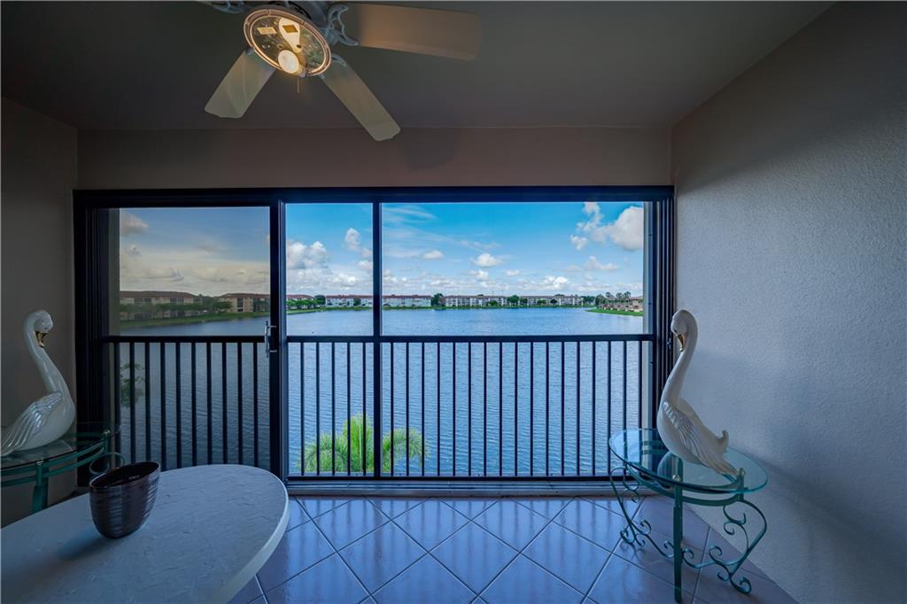 Spectacular lake view, immaculate condition, 2 beds 2 baths, Karanda model, 4th floor, Accordion Hurricane shutters and roll down hurricane shutters on the master bedroom, galley kitchen, Laminated floors on top of ceramic tile. A/C condenser is about 3 years old. Kitchen with white cabinetry and white appliances, recessed lights, knockdown texture ceiling. Walking shower on the master bathroom, 2 walk in closets, utility closet. Excellent 55+ community to live in. Great amenities and entertainment. Pools, gyms, golf, restaurant, tennis, clubhouse, theater, free transportation for residents. No rentals for the first 2 years, no pets.