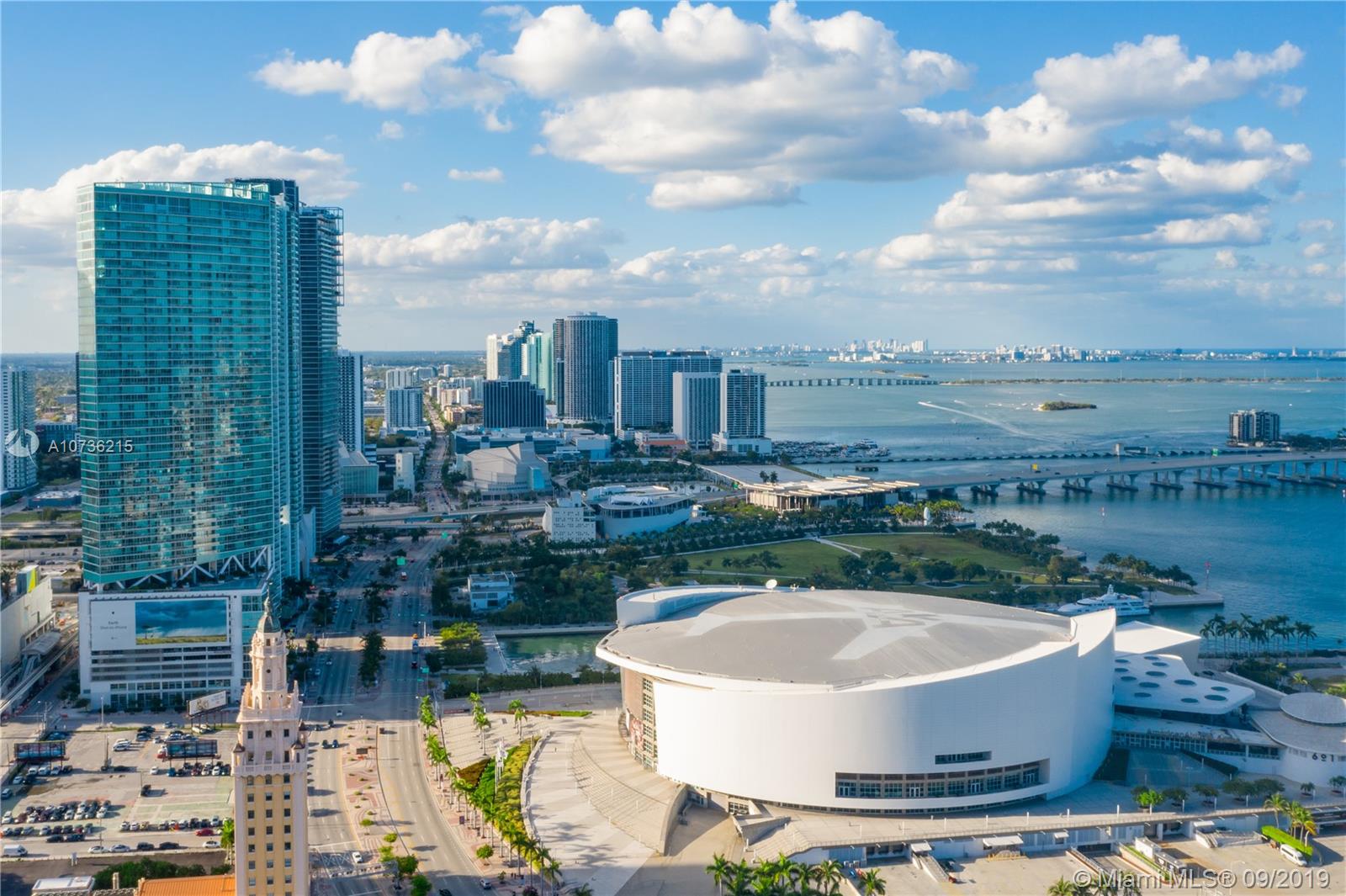 Beautiful Marina Blue 1 bed, 1.5 bath unit with spectacular views. Unit has been freshly painted. Building is located across the street from the AAA, Perez Art Museum, Bayside & Biscayne Amphitheater. It is very well maintained & features great security, fully equipped gym w/ spinning bikes, sand volleyball court, golf putting green, 2 pools, outdoor lounge area, bbq area, business center, 2 story party room & convenience store downstairs. Cable is included. Parking space is on the same floor as unit as well as A/C equipped storage on the same floor.