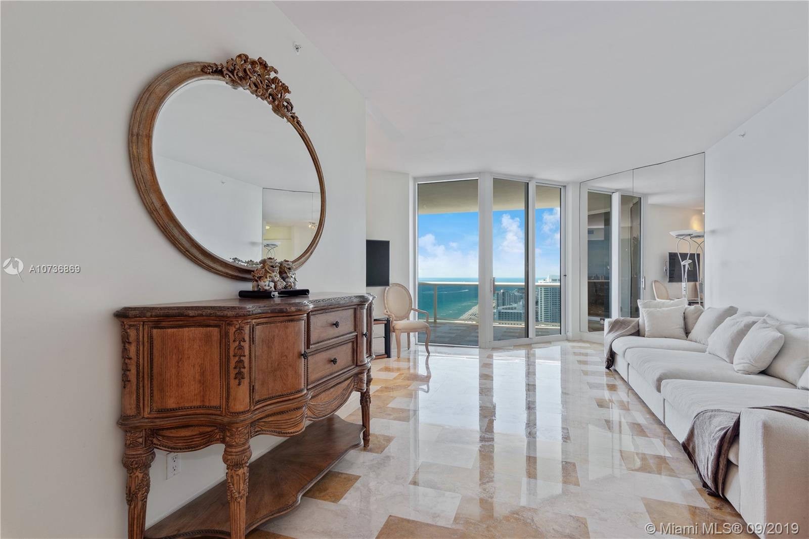 Magnificent Green Diamond Ph located on the 42nd Floor offering the most spectacular views of Downtown Miami, Biscayne Bay, South Beach, Intracoastal, Port of Miami, and the ocean. This spacious 1600 sq ft residence features 2 large bedrooms, 2 bathrooms and a private den/office. Some of features include high ceilings, marble floors throughout, large expansive terrace, expansive glass windows that bring the outside in, custom made closets, window treatments, split floor plan and a galley kitchen. Large master suite, custom built walk-in closet and a bathroom outfitted with double sinks, glass enclosed marble shower and large spa tub. MURANO AND ART DECO CHANDELIER EXCLUDED FROM THE SALE. This PH residence is accompanied by 5 star amenities.