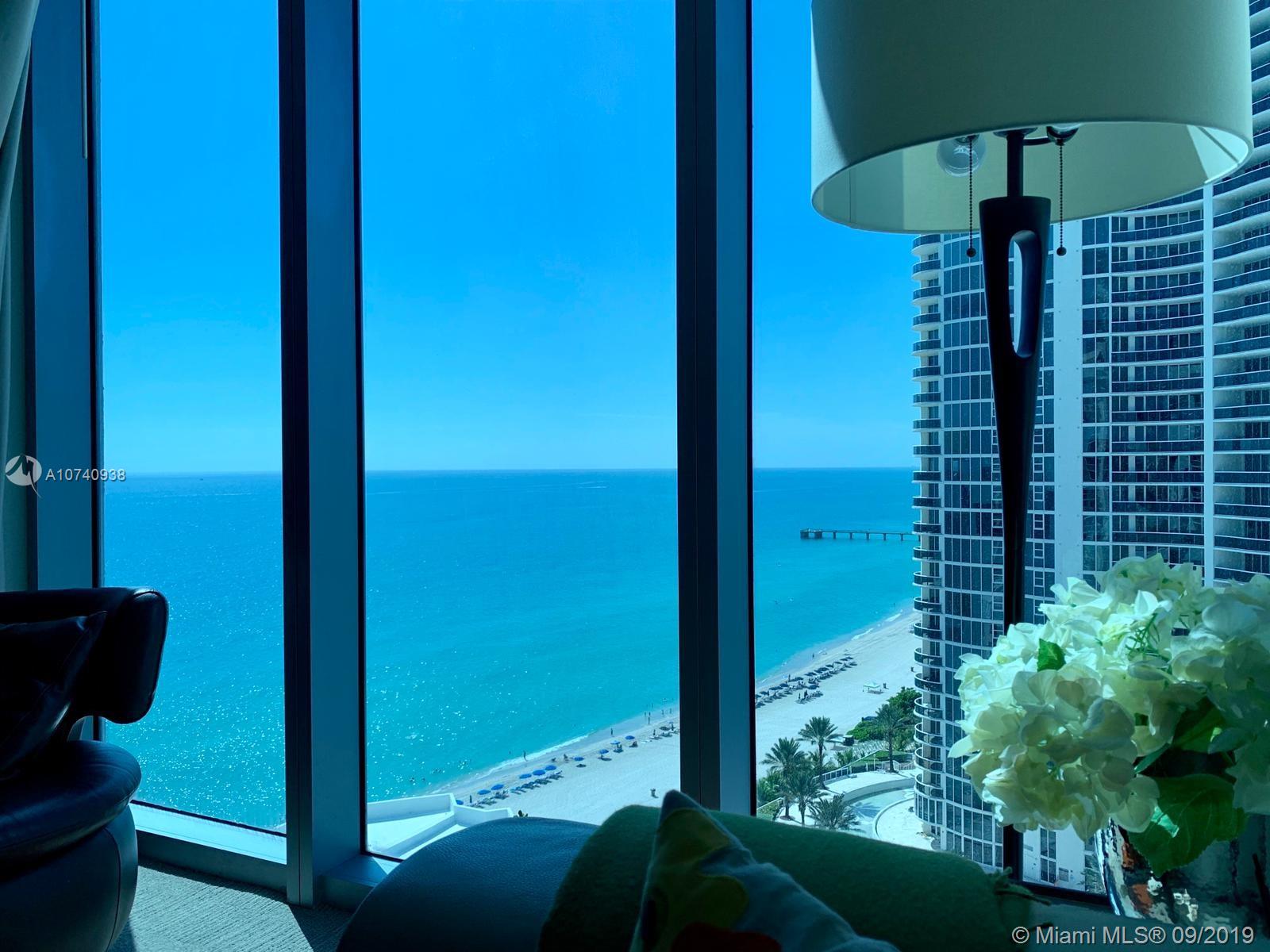 Bright partially furnished 2/2 corner unit on a high floor at the Sole on the Ocean, a boutique condo hotel managed by Noble House Hotels & Resorts in desirable Sunny Isles. Spectacular views of the ocean & intracoastal. The unit is divided in two (A&B), a suite unit with a kitchen and a second guest suite, each w/ a separated private entrance. It can be rented separated/combined. This unit was never part of the rental program. A viable option to the new owners, when not using it. Unit comes w/ one valet parking space, two separate a/c units. Hot water, cable and internet is included in the maintenance. Amenities include pool and beach services, restaurant, bar, exercise room, 24-Hr concierge. EZ access to major highways, close to Aventura Mall, grocery, restaurants, etc. Price to sell.