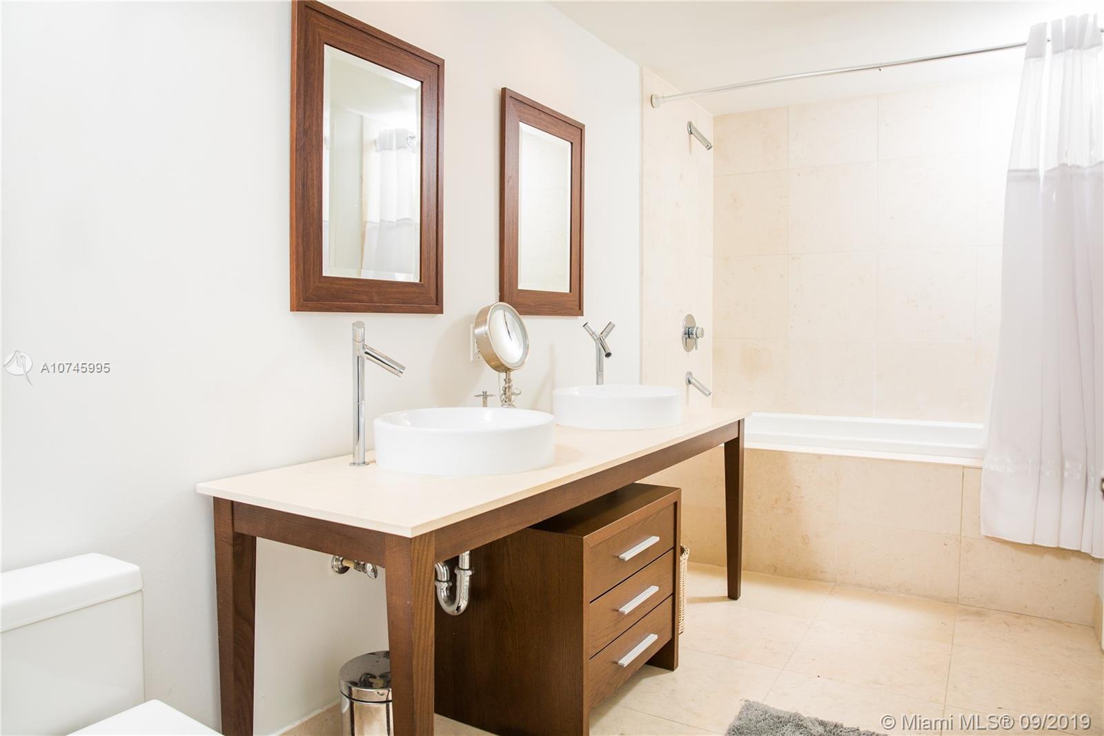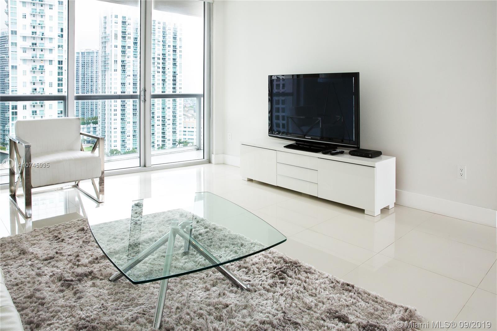 Beautiful one bedroom one bathroom unit (842 sq ft.) Unparalleled high floor (25th) city views of Brickell. This unit features SubZero/Wolf Appliances, island kitchen, large walk in closet as well as double sink in the bathroom with exit to bedroom and living room area. It is fully furnished, and comes with essentials such as linens. This unit also includes one free valet parking spot, access to gym, spa by Phillipe Starck and CLUB FIFTY at 50th floor.