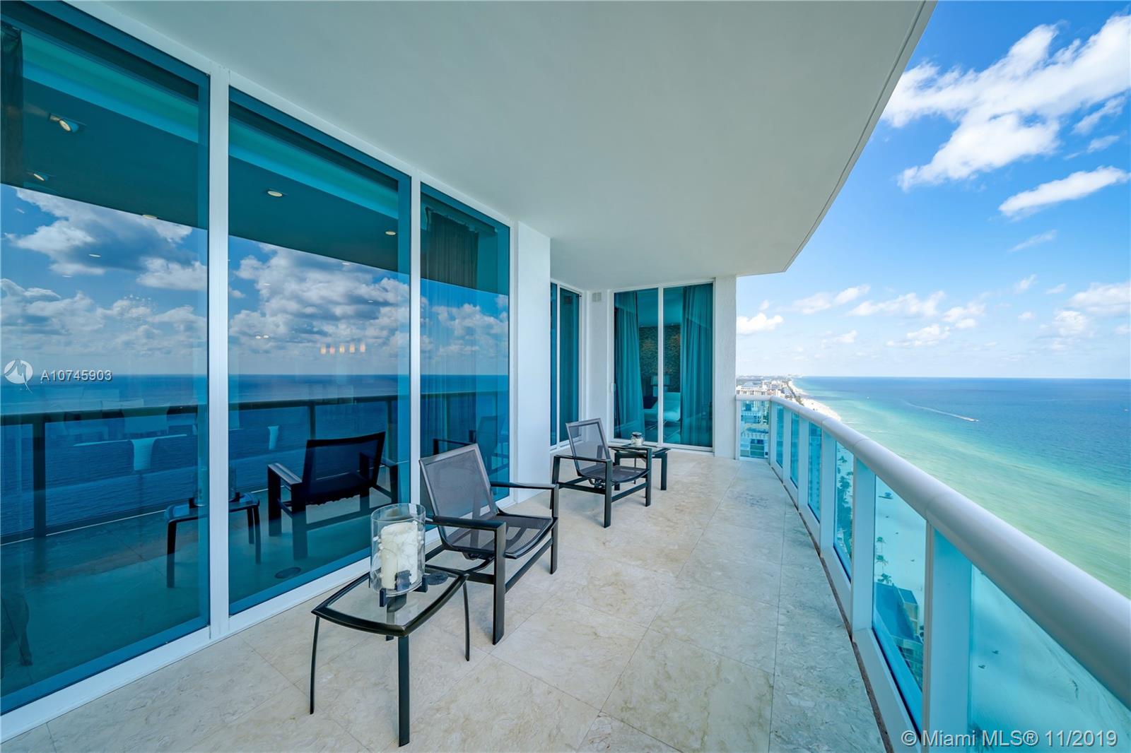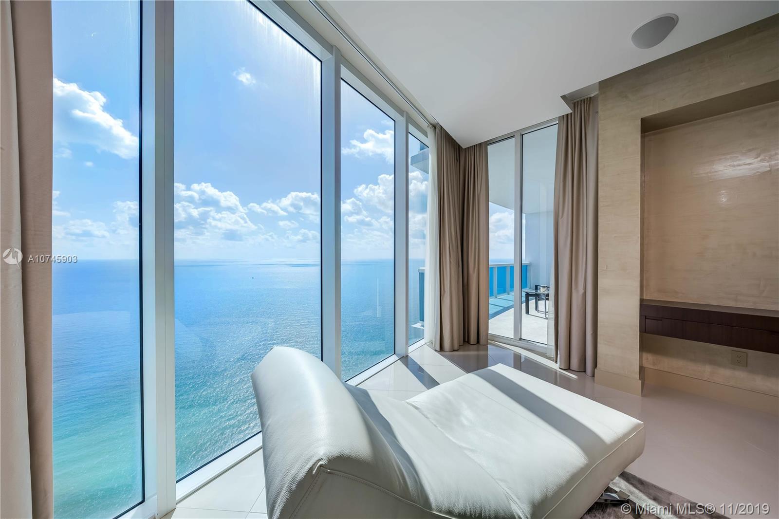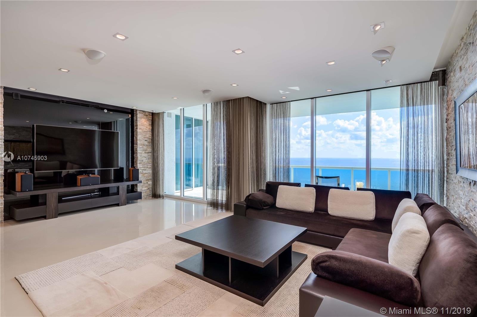 Luxurious Trump Hollywood. Panoramic direct Ocean views. 3B 3.5BA, family room, Gourmet European kitchen w/ high quality Miele & Sub-Zero appliances. Private elevator entrance, higher ceilings only 34th floor+above, floor to ceiling glass windows & spacious terrace. Professionally designed & furnished, Holly Hunt, Christian Liaigre, Artefacto & Tai Ping rugs. No expense spared. Full Crestron home automation for A/V, shades, curtains & lighting. Direct Oceanfront flow thru unit w/ due east & west terrace views. Breathtaking views in every direction. Finest Finishes! Stunning! 2 storage units. Exquisite Lobby, Unsurpassed Amenities incl. Breakfast Room, Wine+Cigar Lounges, Fitness Center,Spa,Massage Rooms,Theater,Party Room,Caterer's Kitchen,Pool+Beach Service,24 hr Security,Valet.