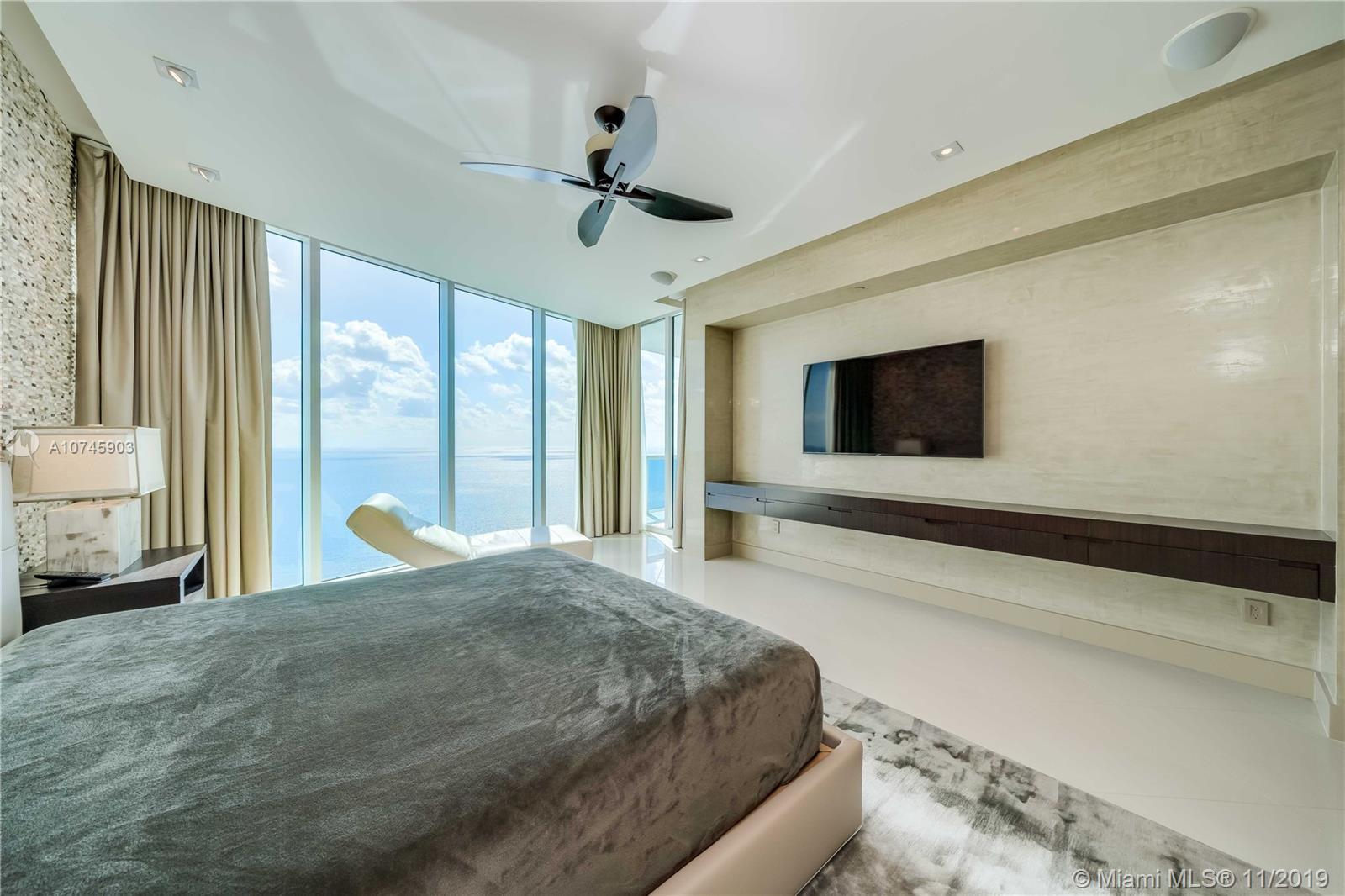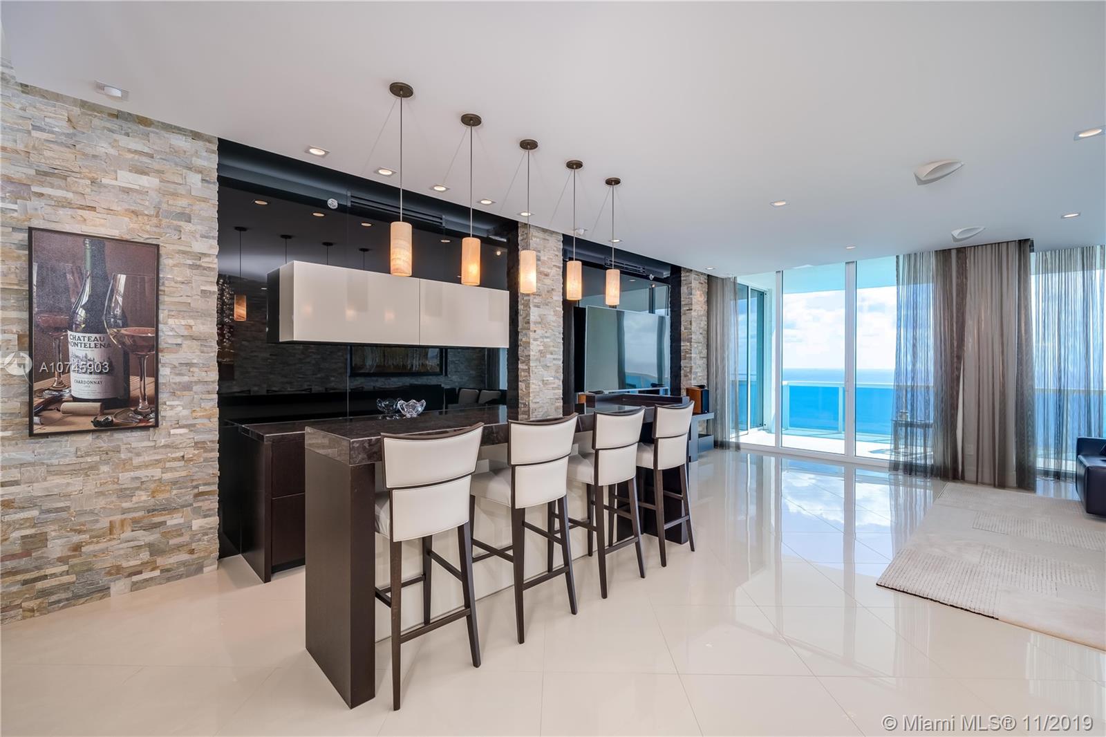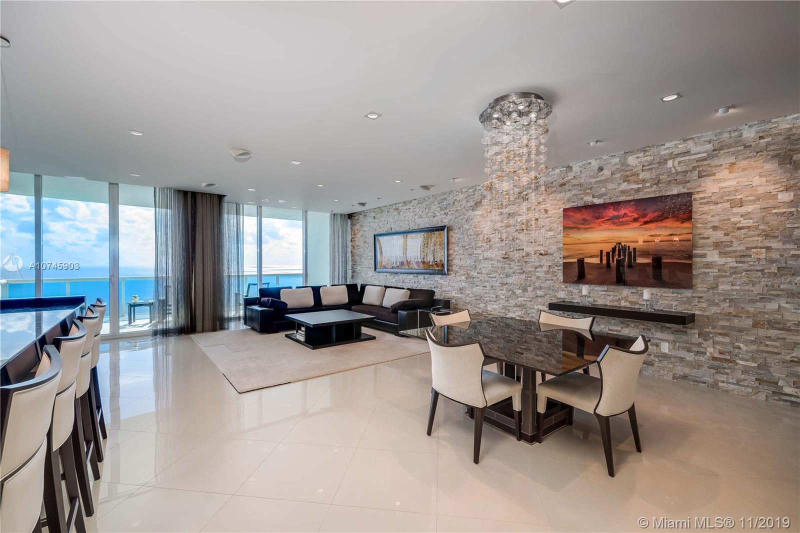 Luxurious Trump Hollywood. Panoramic direct Ocean views. 3B 3.5BA, family room, Gourmet European kitchen w/ high quality Miele & Sub-Zero appliances. Private elevator entrance, higher ceilings only 34th floor+above, floor to ceiling glass windows & spacious terrace. Professionally designed & furnished, Holly Hunt, Christian Liaigre, Artefacto & Tai Ping rugs. No expense spared. Full Crestron home automation for A/V, shades, curtains & lighting. Direct Oceanfront flow thru unit w/ due east & west terrace views. Breathtaking views in every direction. Finest Finishes! Stunning! 2 storage units. Exquisite Lobby, Unsurpassed Amenities incl. Breakfast Room, Wine+Cigar Lounges, Fitness Center,Spa,Massage Rooms,Theater,Party Room,Caterer's Kitchen,Pool+Beach Service,24 hr Security,Valet.