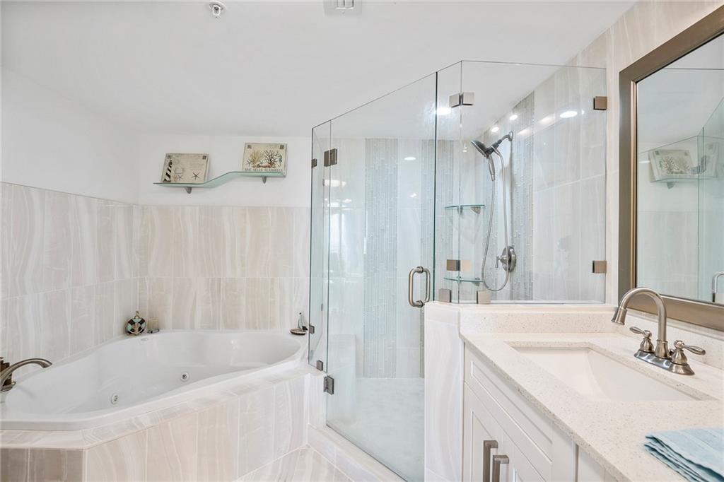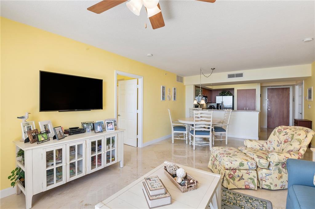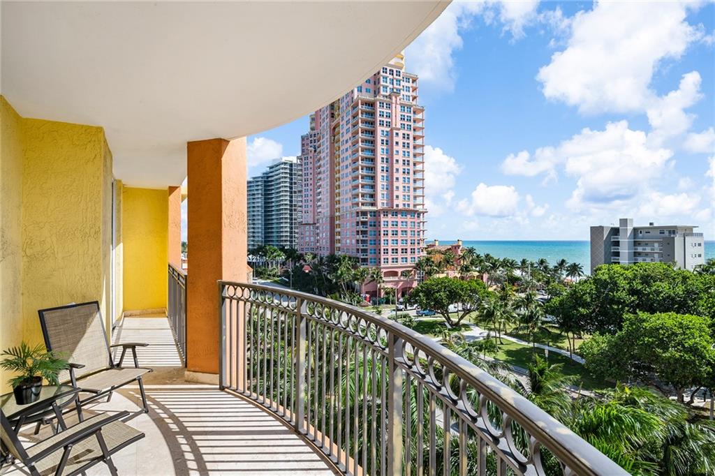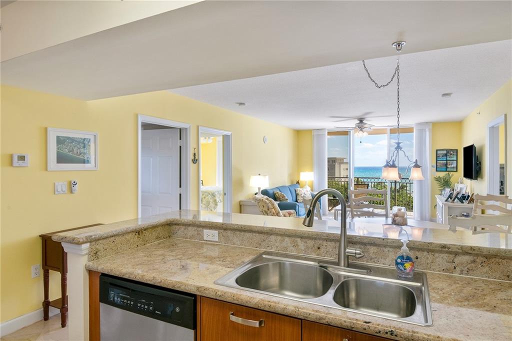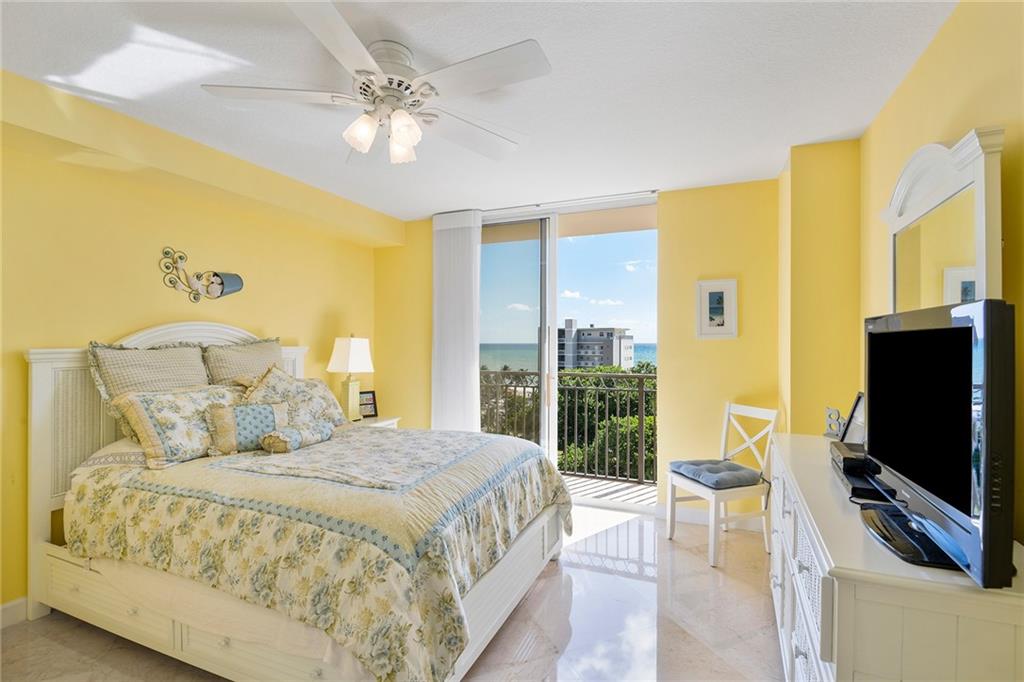 Price reduced and furnished! Direct ocean views provide a WOW factor from all the main living areas of this meticulously maintained North Tower condo. Open floor plan with kitchen, dining and living areas all facing East to the ocean. Split bedrooms with walk-in closets, outdoor balconies and direct ocean views. Master and guest baths have both been totally remodeled. This home has beautiful polished marble floors, a separate den or office with French doors, new A/C (December, 2018), newer washer/dryer and TWO assigned parking spaces (one in the garage). Vue residents and guests enjoy exclusive use of The Vue Beach Club located directly on the beach. Secure building and grounds with 24 x 7 security, redecorated reception areas, management on premises, pets allowed and new fitness center.