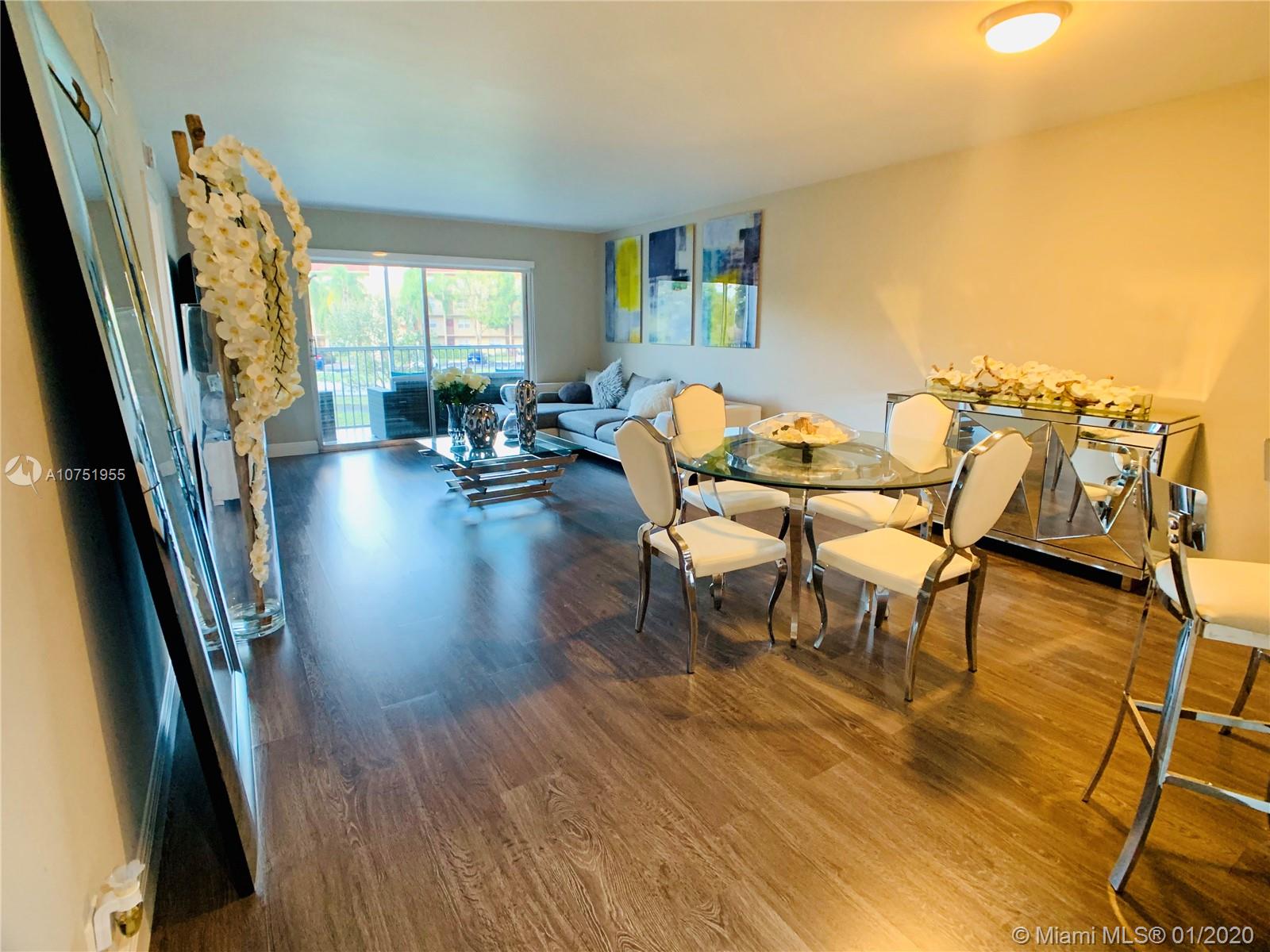 Beautifully remodeled and totally upgraded 2/2 apartment with a view in Century Village (55+Community). The kitchen features brand new stainless steel appliances, marble counter tops, tiled back splash and so much more. Popcorn ceiling was removed, lighting was upgraded, tasteful wooden floors installed and new Samsung Washer & Dryer included. Huge walk in closet in the Master Bedroom and both bathrooms fully redesigned. Great Cable Package, Water & Garbage all included in HOA payment. Live in constant vacation in this very well kept community that has it all. Courtesy transportation, clubhouse, theater, health club, market place, pharmacy, doctor on-site, nail and hair salon, cafeteria and much more. Service pets are allowed but there is a procedure to be followed.