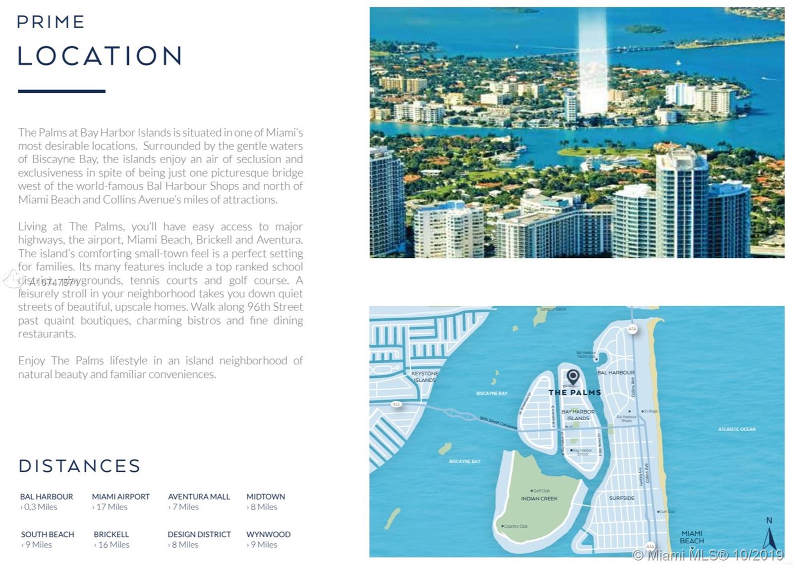 BRAND NEW CONDO, NEVER LIVED IN! Large 1 Bed + Den (can be 2nd bdr) & 2 Baths with partial water view. 2 covered parking spaces + 1 storage cage. Complete Kitchen with top of the line appliances including wine cooler and washer/dryer. The Palms Condo is a boutique waterfront building with a rooftop pool deck, hot tub, rooftop BBQ/entertainment area with amazing views. Located in Bay Harbor Islands, one of Miami’s most desirable locations. Walk to "A" rated Ruth K. school (K-8), just minutes to the world-famous Bal Harbour Shops and the sandy beaches of Bal Harbour and Surfside. The island is perfect for families; playgrounds throughout the island, tennis courts, bicycle paths, citibike rental adjacent to bldg. A one of a kind property in a one of a kind neighborhood. Easy to Show!