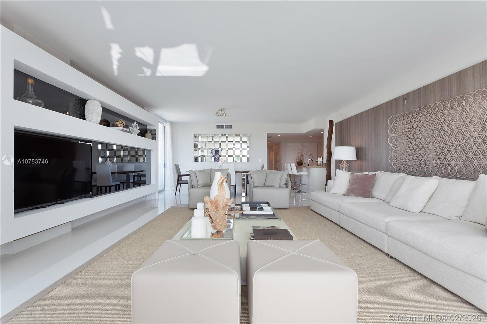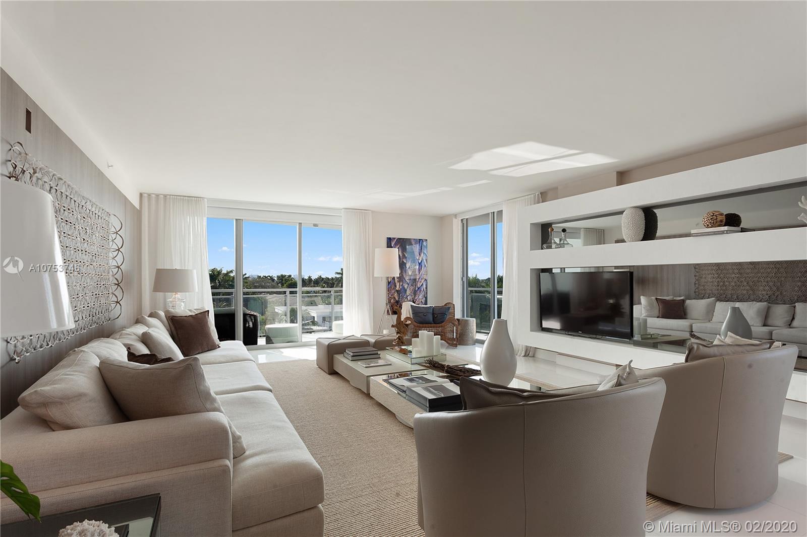 Amazing Deal! Waterfront Corner Unit in Bay Harbor. 3 beds 3 and half baths. Fully finished with white porcelain floors throughout. Window treatments (blackouts and sheer curtains) Bosh appliances. Large terrace with beautiful views of water & Indian Creek golf course. Fully decorated by ARTEFACTO. Boutique Building with private elevator, private storage and 2 parking spaces. TURN KEY Furnished! A must see Unit. Priced to sell!