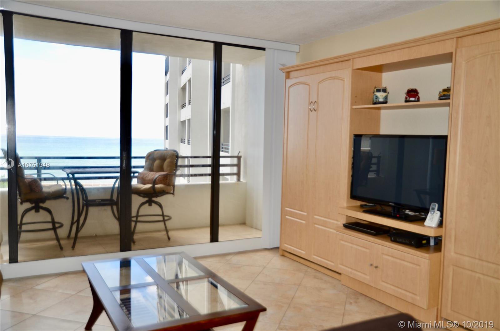 Beautiful unit directly on Hollywood Beach with magnificent views of the Ocean. As soon as you open the door of this unit, you will see the blue of the ocean from everywhere. Open kitchen with granite counter top, tile floor throughout, and remodeled bathrooms (1.5). This bright & spacious condo will sell all furnished and turnkey. Direct and Private access to the beach, heated pool, fitness center, security 24/7 and valet parking. Come see that great views that you can get when you are cooking, entertaining or watching tv. Perfect for the beach lover. You can also rent monthly & right away, close to the Gulfstream, Hollywood Downtown, all the restaurants and stores. The only 1&1.5 with direct Oceanview for sale, don't mis it!