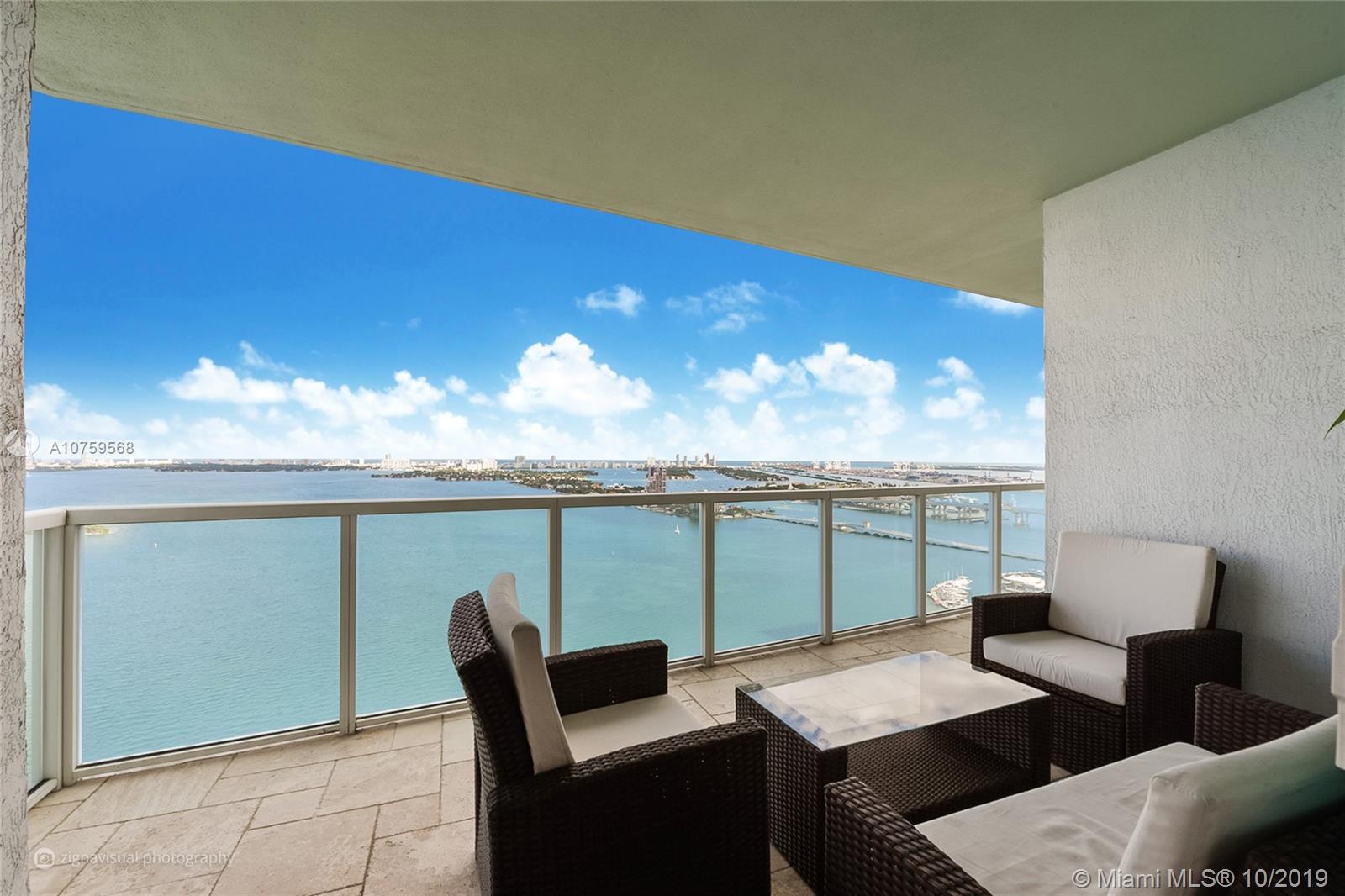 Gorgeous direct East water views from every room of this completely remodeled 2, 2.5 + den, 1378 SF luxury waterfront unit at Quantum on the Bay in Edgewater. Best line in the building - SE corner 01 with extended private wraparound terrace & perfect split floorplan layout with double master bedrooms, walk-in closets & private baths. Immaculate & loaded with custom upgrades throughout: floor-to-ceiling impact glass, tons of natural light, 24x24 carrera marble & wood flooring, modern/european kitchen with granite & s/s appliances, custom bar & lighting, glass showers, motorized blinds, LG W/D, covered parking & more! Premium location next to all Miami has to offer & on a beautiful waterfront park with 5* amenities: 2 pools, gym, bball, tennis, volleyball, security, front desk, valet & more!