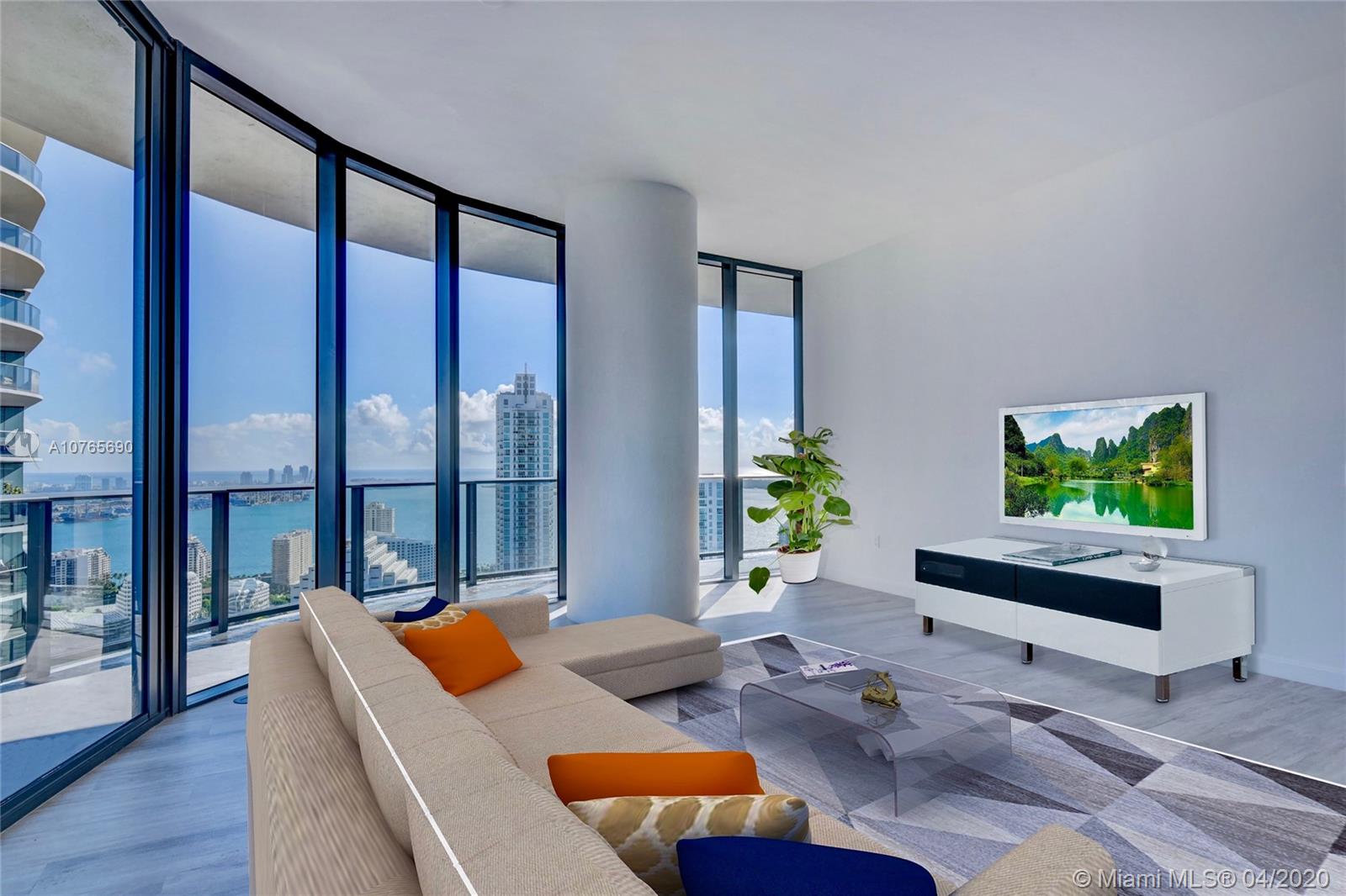 Income-producing lower PH unit with spectacular million-dollar views in trendy Brickell Heights. This beautiful 3BD/3.5BA + DEN unit on the 45th floor boasts high ceilings, porcelain floors & unobstructed views of Biscayne Bay, Fisher Island & the Brickell/Downtown skyline. New unit features contemporary Italian-style cabinetry, floor-to-ceiling glass, premium BOSCH appliances, glass-enclosed showers, 1 assigned parking space with a lift for a 2nd car and more. Excellent location with onsite Equinox Gym, SoulCycle in Brickell's luxurious shopping & fine dining right outside. Resort-style amenities include residents-only rooftop pool & lounge w/panoramic views, spa, and much more. Tenant occupied until March 2021.